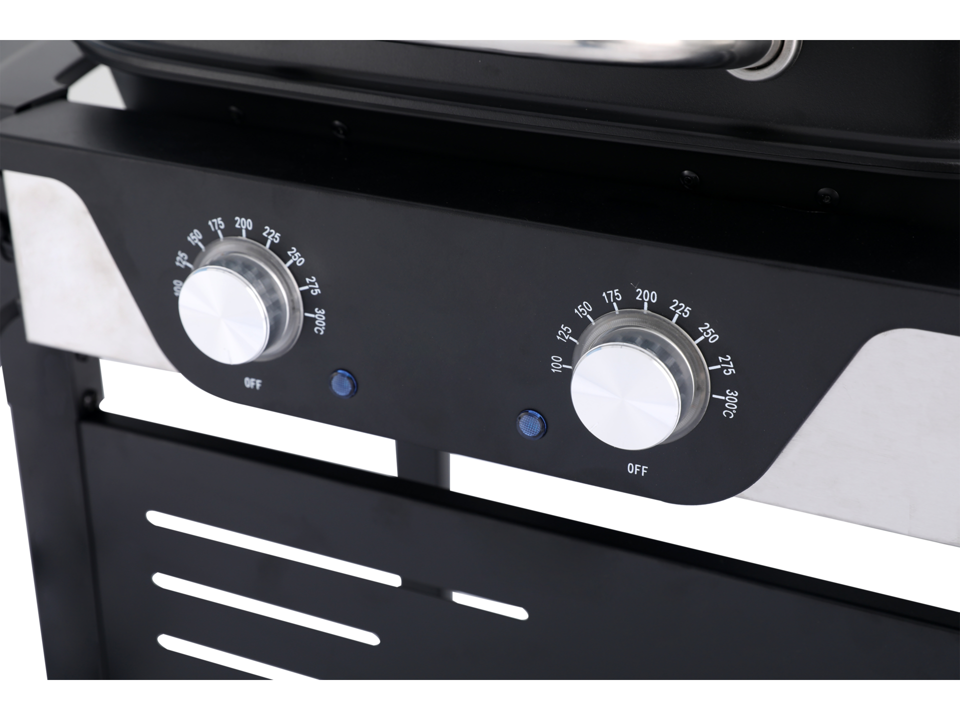 Wyposażony w dwie grzałki o łącznej mocy 2300W, grill YATO YG-20070 oferuje imponującą wydajność grzewczą. Unikalna 2-strefowa regulacja temperatury pozwala na jednoczesne przygotowywanie różnych potraw w zakresie od 100 do 300°C.