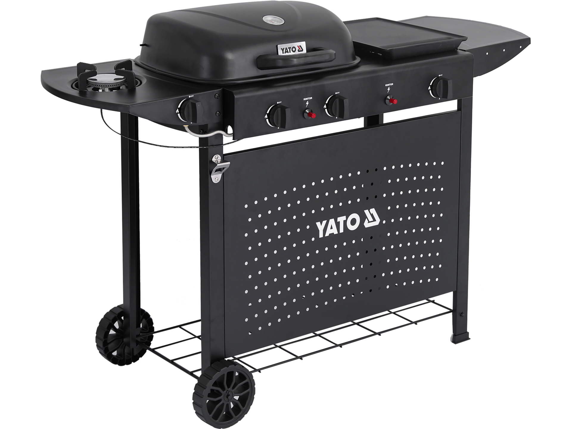 Grill YATO YG-20008 posiada cztery palniki o łącznej mocy 11 kW, co w połączeniu z niskim zużyciem gazu i trwałą konstrukcją misy, zapewnia efektywne i ekonomiczne grillowanie. Wymiary i waga grilla, materiały wykonania oraz możliwość dokupienia dodatkowych akcesoriów, jak pokrowiec czy wąż z reduktorem, to kolejne atuty tego modelu.