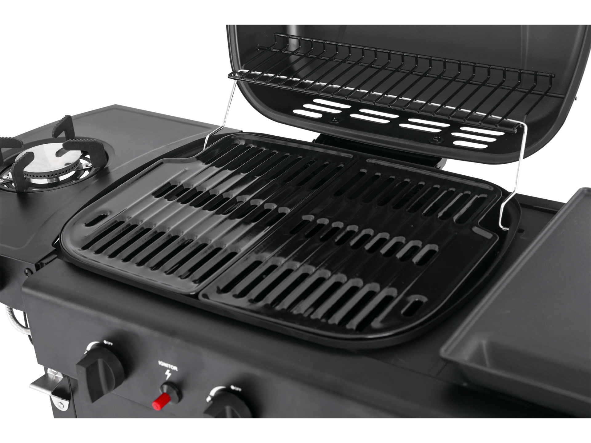 Grill gazowy YATO YG-20008 to idealne rozwiązanie dla entuzjastów grillowania na świeżym powietrzu. Dzięki czterem palnikom, w tym bocznemu, użytkownicy mogą cieszyć się różnorodnymi metodami gotowania, od tradycyjnego grillowania po smażenie na płycie żeliwnej. Dodatkowa kratka podgrzewająca utrzymuje potrawy w cieple, co jest idealne podczas przyjęć.
