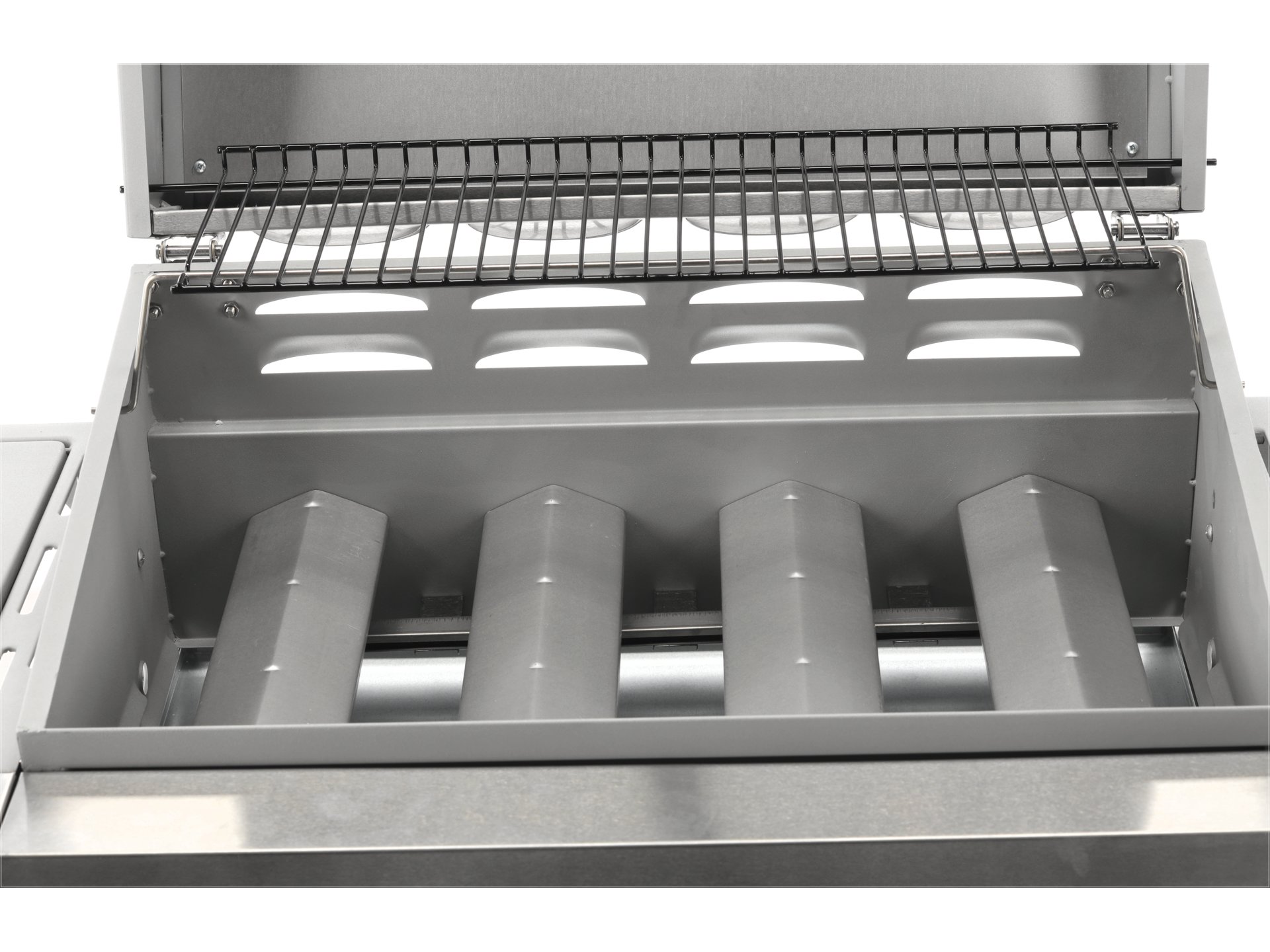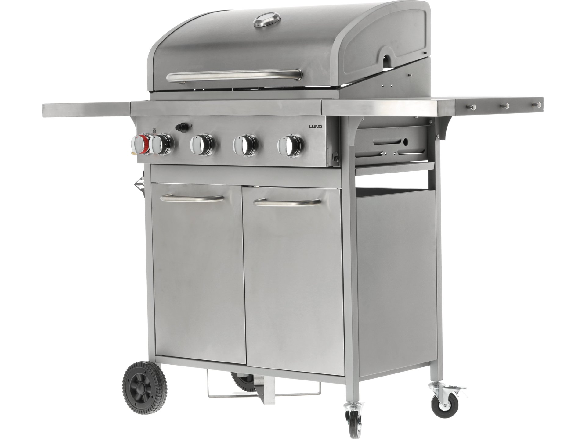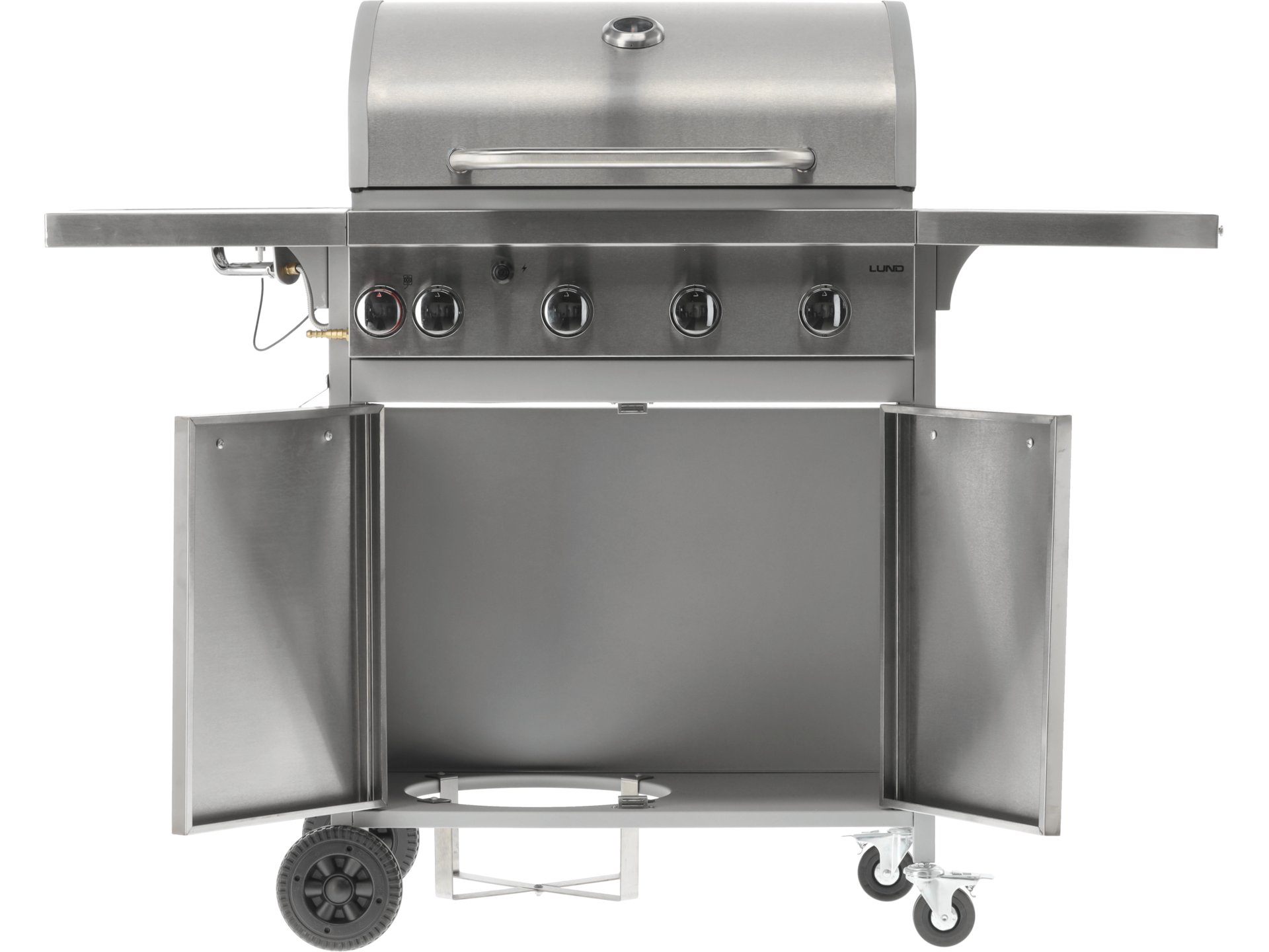 Grill gazowy Lund oferuje wiele zalet, w tym równomierne nagrzewanie się żeliwnego rusztu, co gwarantuje doskonałe przewodzenie temperatury i utrzymanie ciepła. Emaliowana kratka podgrzewająca nad rusztem, liczba palników 4+1 oraz łączna moc 16 kW zapewniają wydajność i elastyczność w przygotowywaniu różnorodnych potraw. Wyprofilowane osłony palnika (aromatyzery) oraz pokrywa z termometrem pozwalają na kontrolę procesu grillowania i nadanie potrawom wyjątkowego smaku i aromatu.