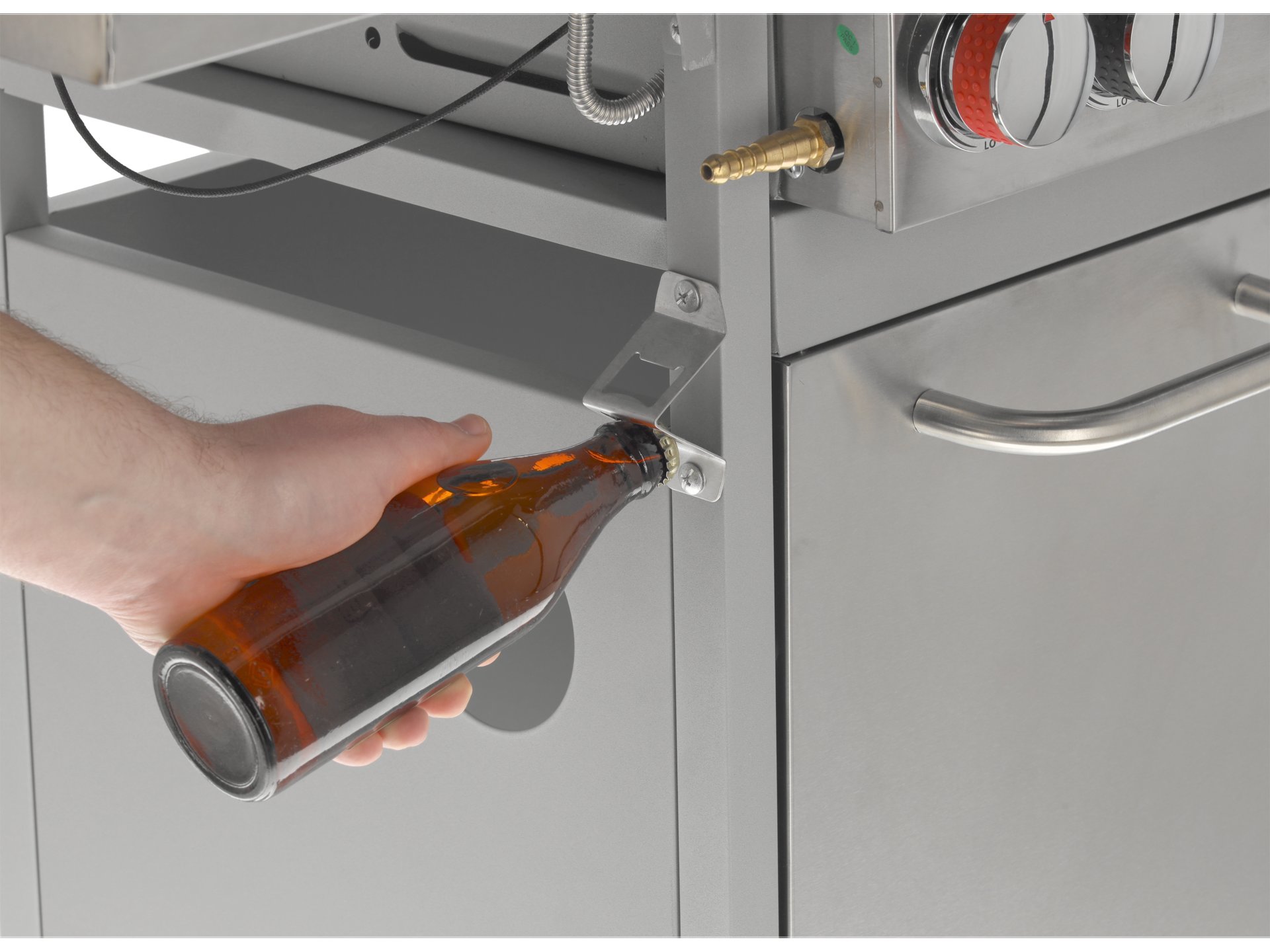 Grill gazowy Lund 99655 jest idealnym rozwiązaniem do przygotowywania potraw na świeżym powietrzu. Dzięki konstrukcji ze stali nierdzewnej i żeliwnego rusztu, grill zapewnia niezawodność i długotrwałe użytkowanie. Półki boczne oraz zamykana szafka to praktyczne miejsca do przechowywania przypraw i akcesoriów. Palnik boczny o mocy 3,2 kW rozszerza możliwości kulinarne, umożliwiając gotowanie i podgrzewanie potraw. Grill wyposażony jest również w otwieracz do butelek, co dodatkowo zwiększa komfort użytkowania.