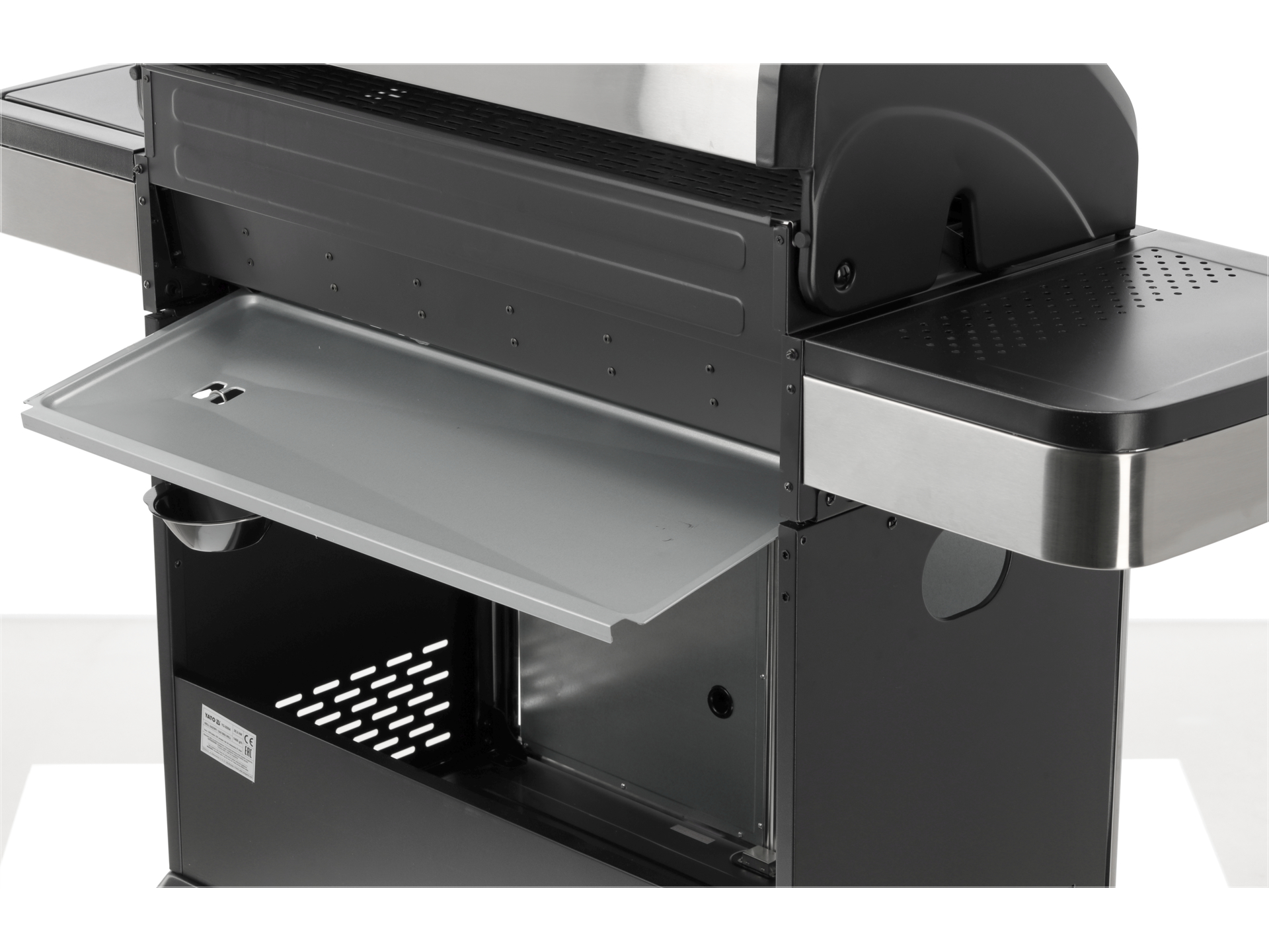Grill przeznaczony jest wyłącznie do użytku na zewnątrz, w dobrze wentylowanych przestrzeniach. Przed każdym użyciem należy sprawdzić szczelność połączeń gazowych. Wszystkie cztery kółka wyposażone są w hamulce – przed rozpoczęciem grillowania należy je zablokować. Butla gazowa przechowywana jest w dedykowanej kieszeni w szafce dolnej.
