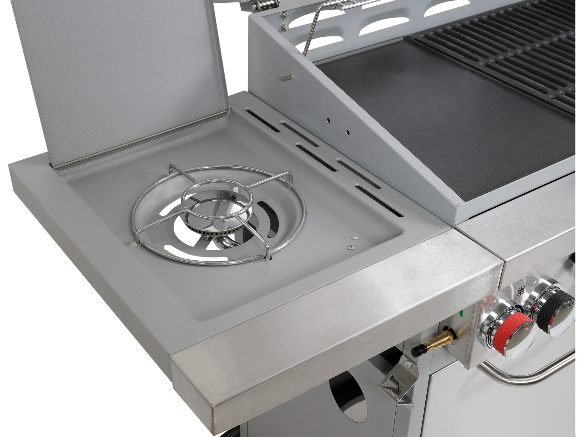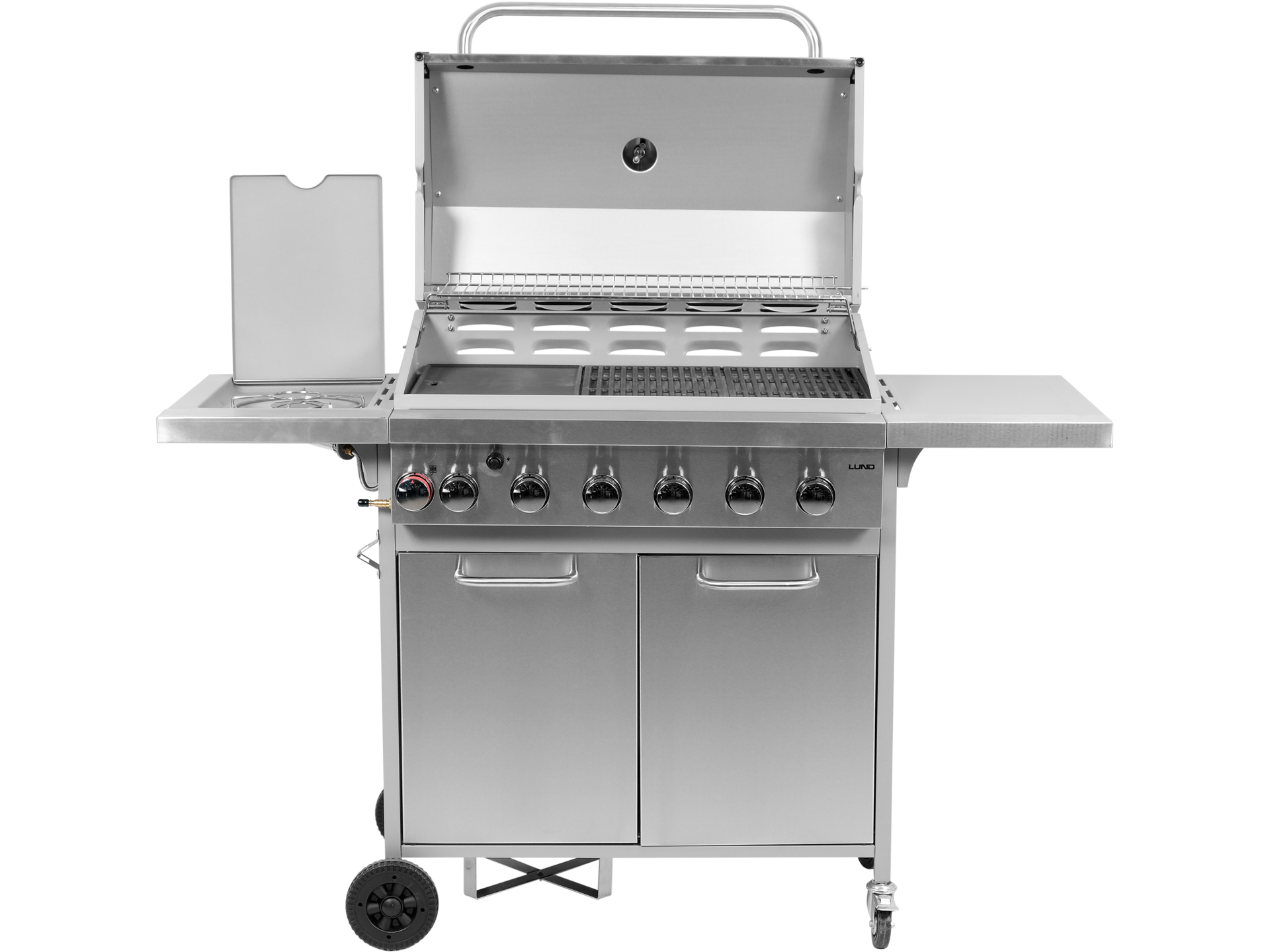 Grill gazowy Lund 99656 to idealne rozwiązanie dla miłośników grillowania, którzy cenią sobie wygodę i szybkość przygotowywania potraw. Otwierana szafka z kieszenią na butlę gazową, emaliowana kratka podgrzewająca oraz niezawodny, żeliwny ruszt sprawiają, że grillowanie staje się prawdziwą przyjemnością.