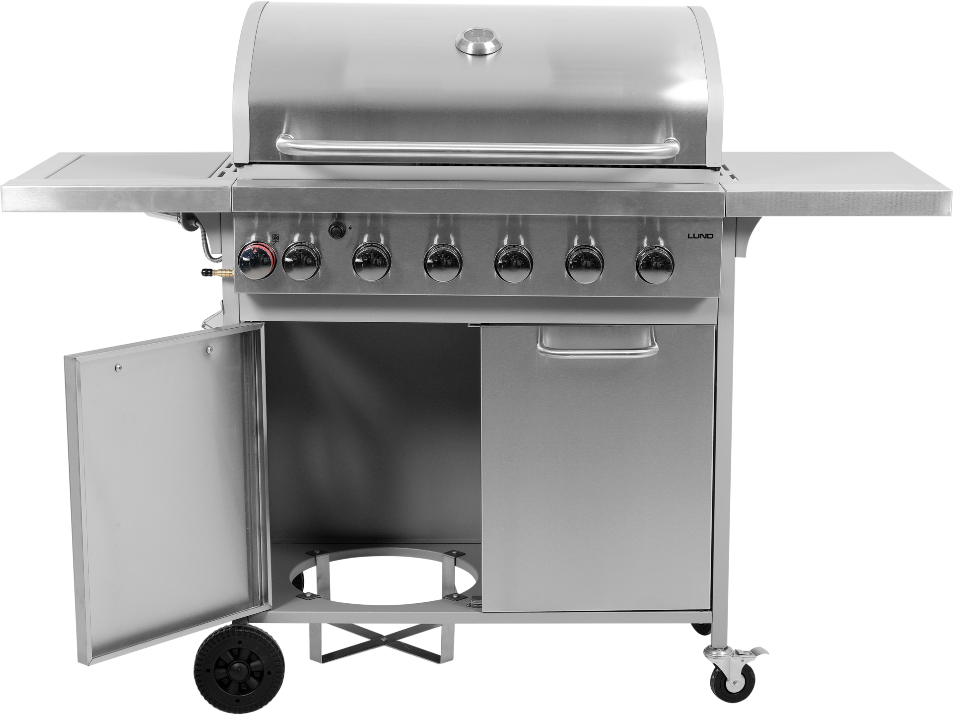 Stalowa misa, półki boczne z haczykami oraz obrotowe kółka z hamulcem to funkcjonalne rozwiązania, które podnoszą komfort użytkowania. Grill Lund 99656 to także wyjątkowy smak potraw dzięki równomiernemu rozprowadzaniu ciepła i zatrzymywaniu aromatu dymu w zamkniętej kopule.