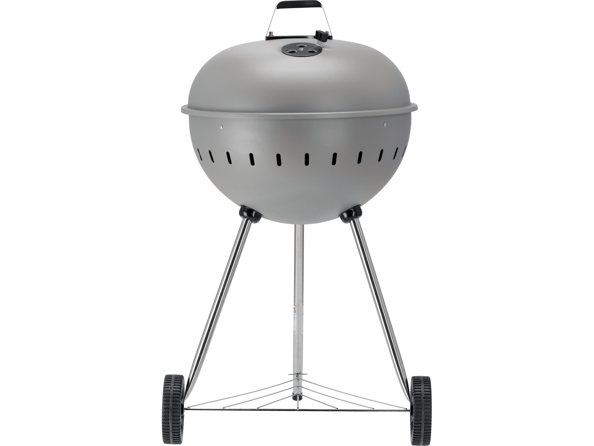 Dwie nogi wyposażone w kółka transportowe umożliwiają łatwe przemieszczanie grilla o wadze około 10 kg. Hak z tyłu konstrukcji pozwala zawiesić pokrywę z boku misy podczas grillowania. Dolna półka zapewnia miejsce do przechowywania węgla, akcesoriów grillowych i przypraw w zasięgu ręki.