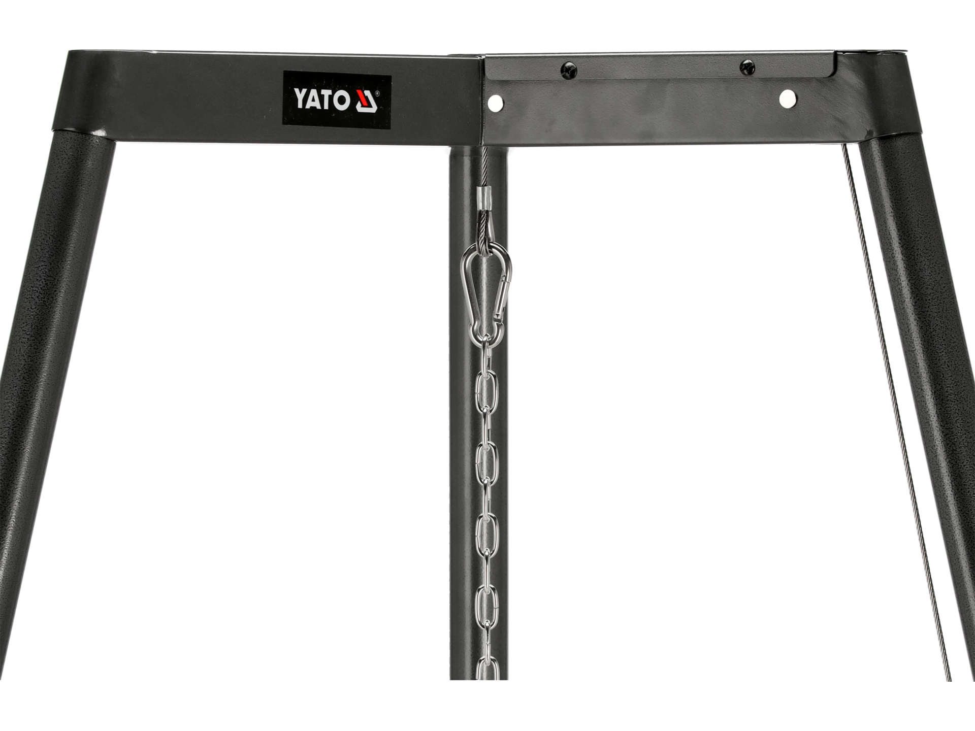 Grill wiszący na trójnogu to rozwiązanie łączące funkcjonalność tradycyjnego ogniska z wygodą regulowanego rusztu. Model YATO YG-20330 wyposażono w ruszt ze stali nierdzewnej o średnicy 66.4 cm, montowany na stabilnej konstrukcji z malowanej proszkowo stali.