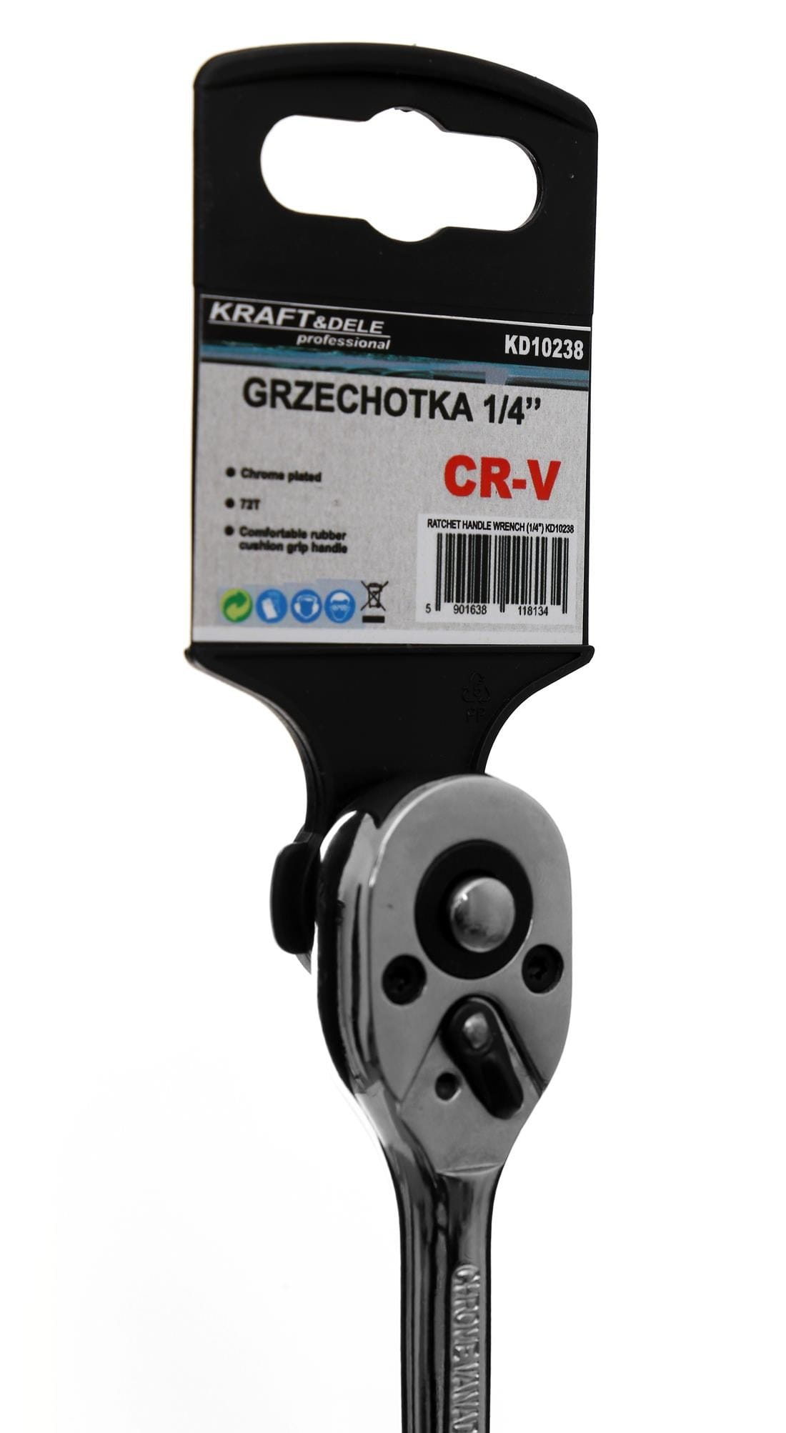 Kompaktowa grzechotka z napędem 1/4" wyposażona w 72-zębowy mechanizm zapadkowy. Krótka długość robocza 152 mm pozwala na pracę w miejscach o ograniczonej przestrzeni, gdzie standardowe grzechotki są zbyt duże.