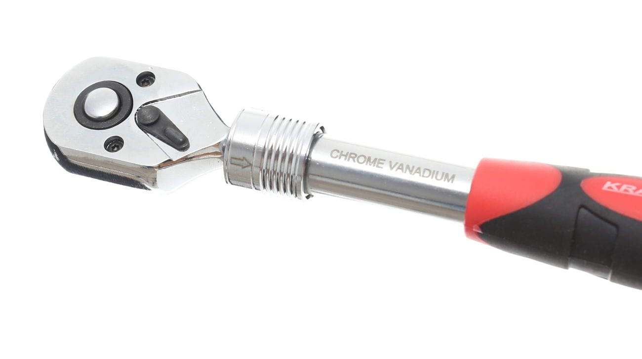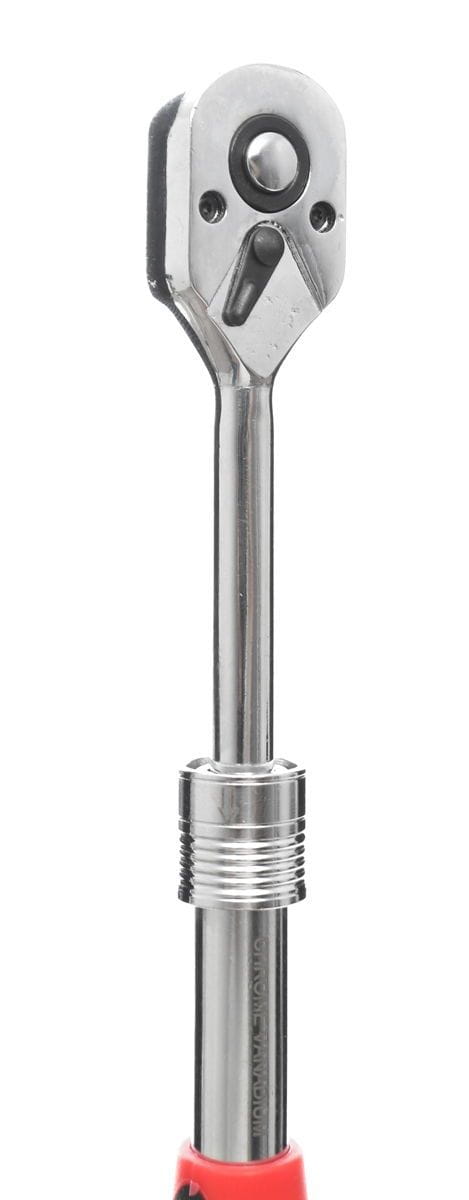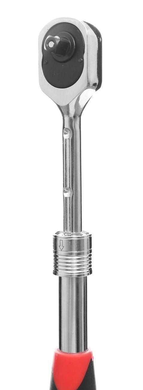 Grzechotka teleskopowa z napędem 1/2" przeznaczona do prac montażowych i serwisowych przy użyciu nasadek calowych i metrycznych. Teleskopowy trzonek umożliwia regulację długości roboczej bez konieczności wymiany narzędzia, co skraca czas pracy w trudno dostępnych miejscach. Mechanizm zapadkowy z 72 zębami zapewnia precyzyjny kąt obrotu wynoszący 5°.