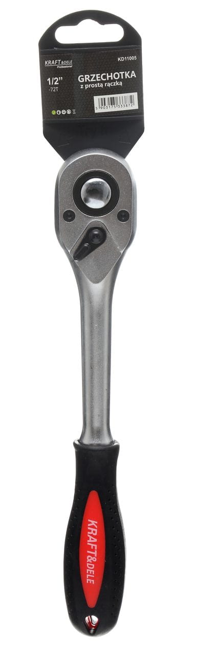 Grzechotka Kraft&Dele KD11005 to narzędzie ręczne z napędem 1/2'' przeznaczone do dokręcania i odkręcania elementów złącznych przy użyciu nasadek. Wykonana ze stali chromowo-wanadowej, wyposażona w mechanizm 72-zębowy zapewniający precyzyjną pracę nawet w ograniczonej przestrzeni.