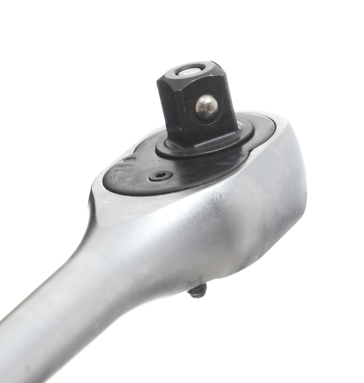 Grzechotka z napędem 3/8'' przeznaczona do pracy z gniazdami i akcesoriami w tym rozmiarze. Wykonana ze stali chromowo-wanadowej z mechanizmem 72-zębowym, który zapewnia precyzyjne działanie przy ograniczonym kącie obrotu rączki.