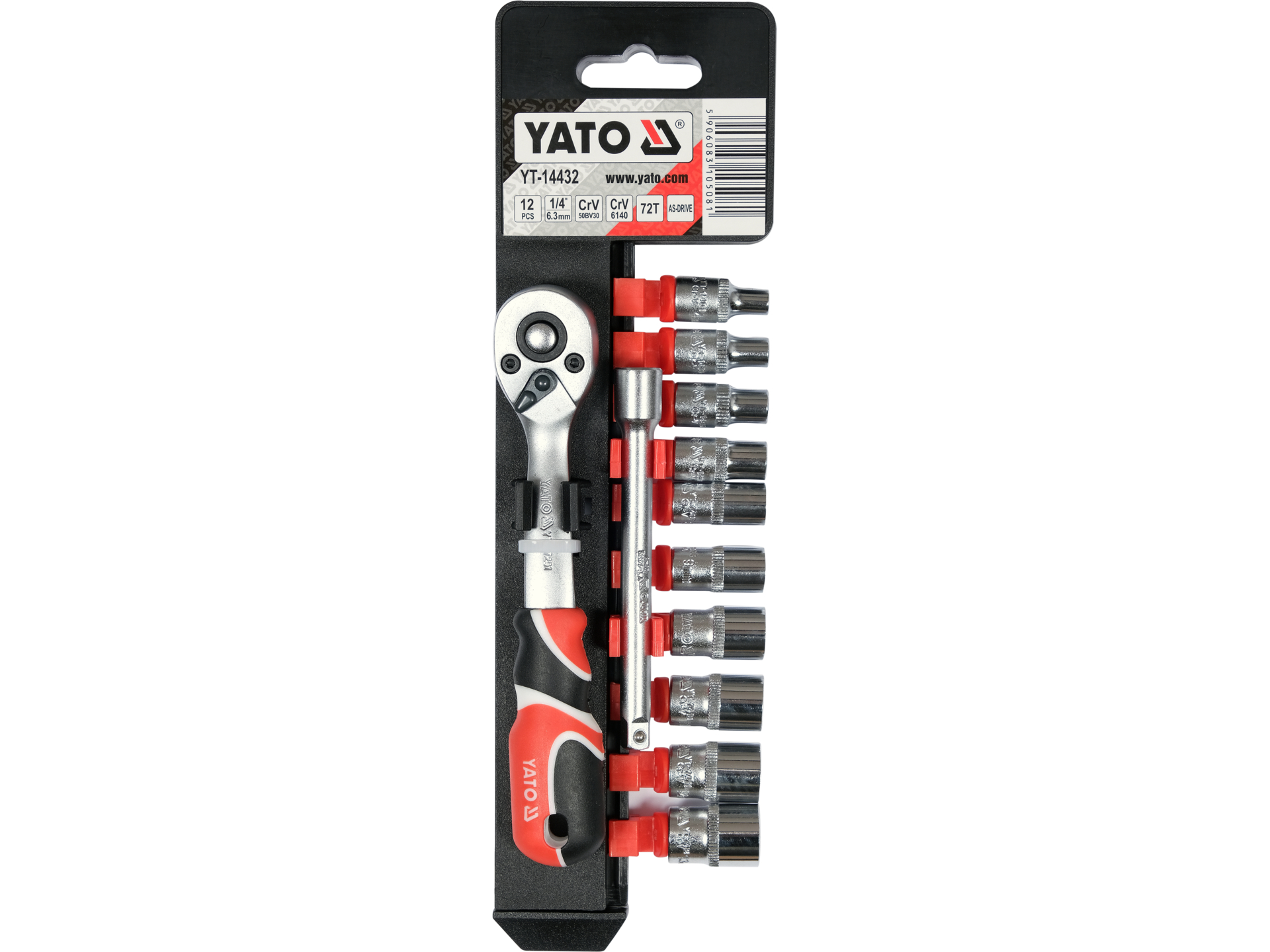 zestaw nasadek grzechotka przedłużka 1/4 cala 12 elementów YT-14432 YATO
