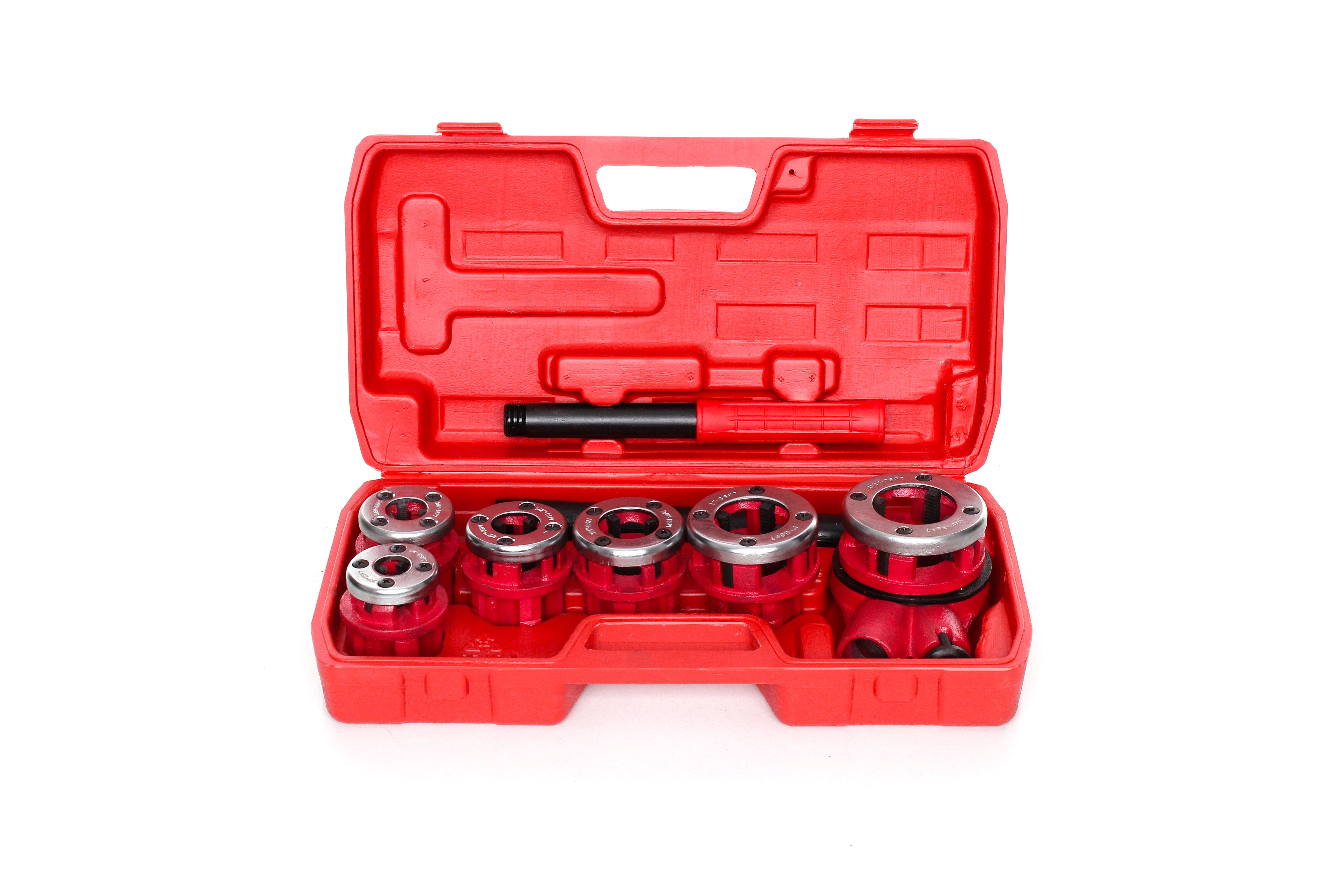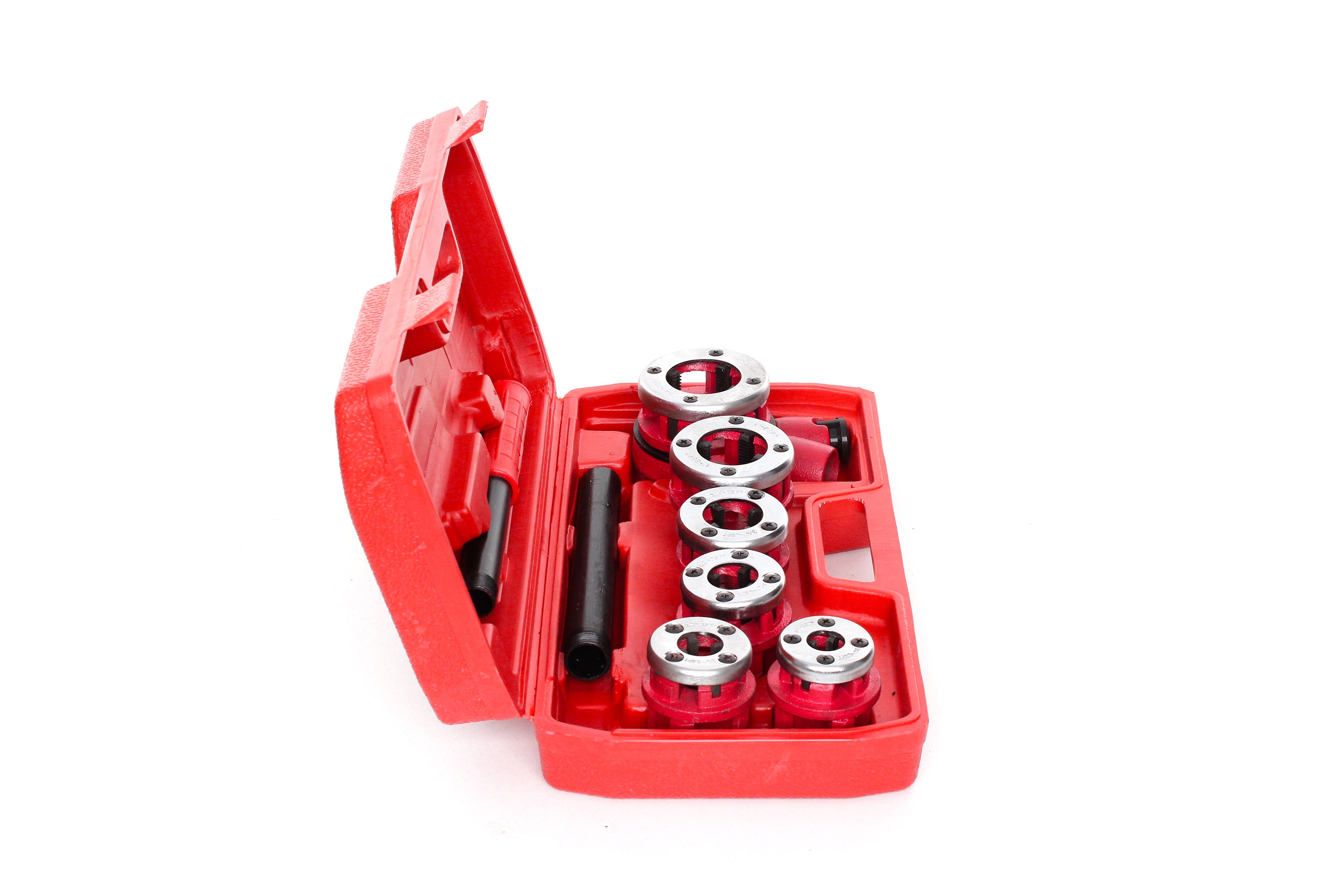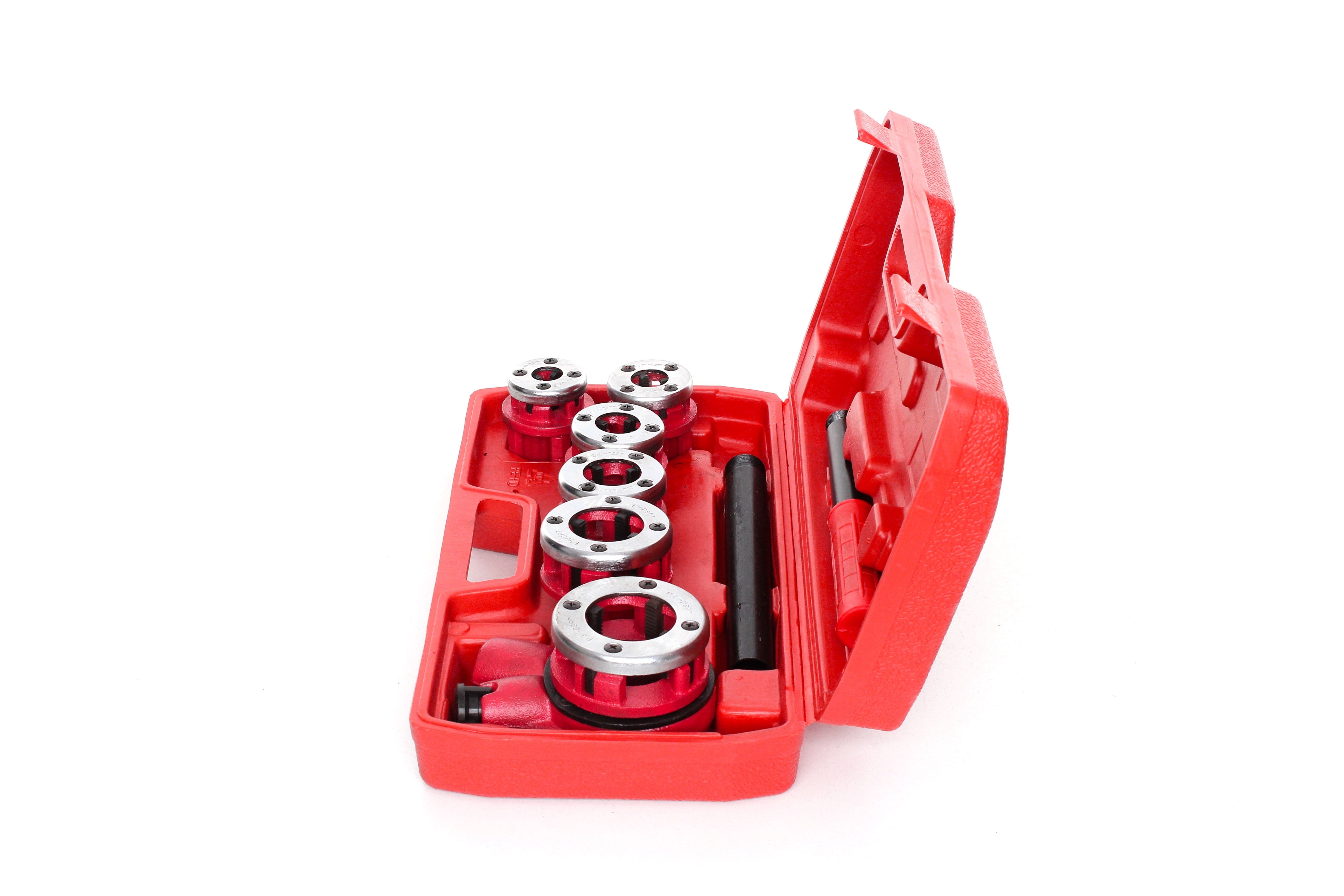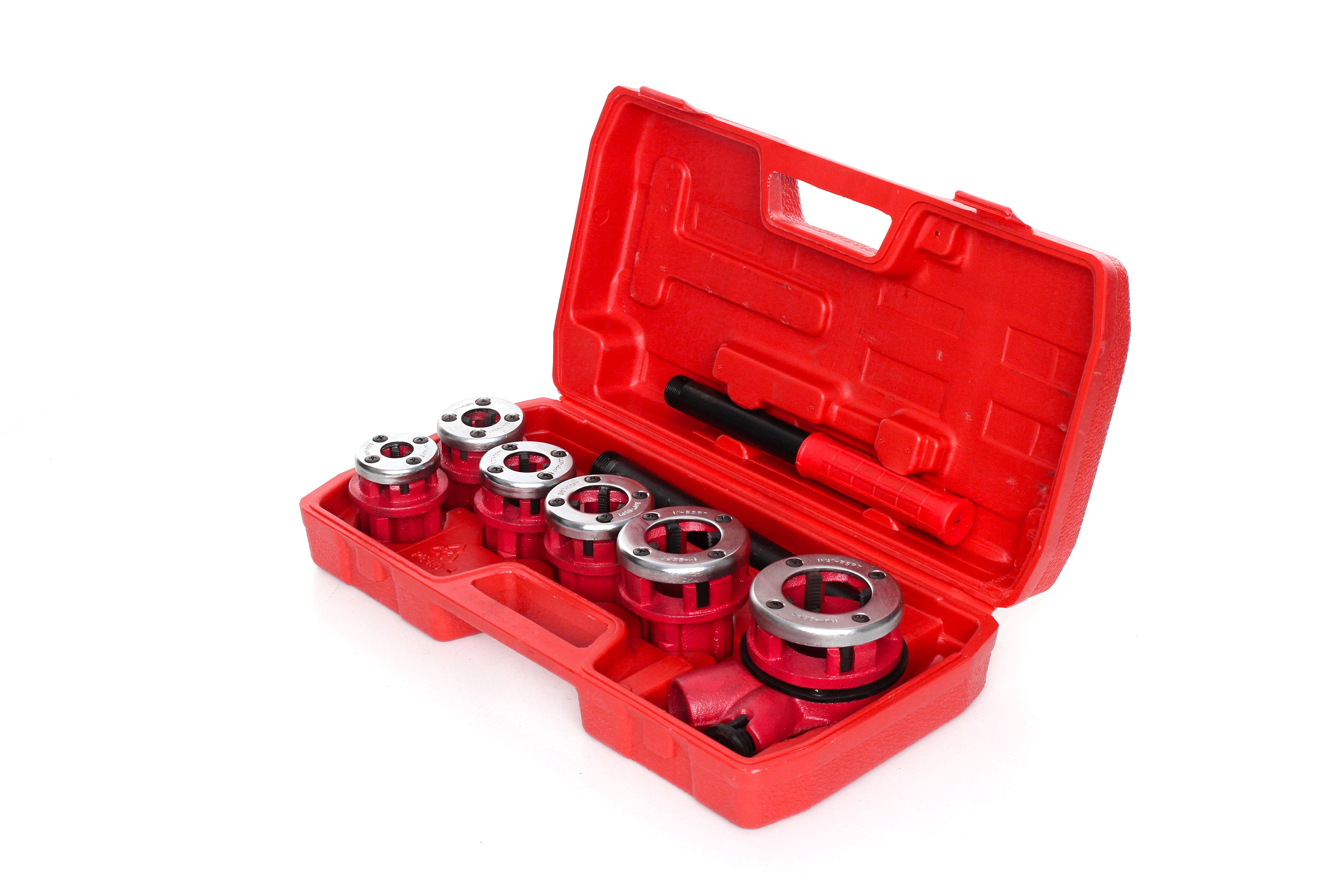 Gwintownica ręczna 6 części KD332 KRAFT&DELE jest przygotowana do typowych prac związanych z przygotowaniem rur pod połączenia gwintowane. Zestaw KD332 pozwala dobrać narzynkę do zadania i pracować w uporządkowany sposób dzięki walizce.