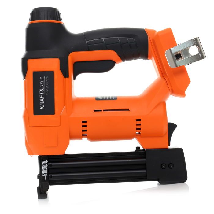 KD1775 to akumulatorowa gwoździarka z serii PROSERIES marki KRAFT&DELE, przeznaczona do wbijania gwoździ i zszywania w pracach montażowych oraz wykończeniowych. Zasilanie bateryjne 18V eliminuje konieczność dostępu do sieci elektrycznej, co umożliwia swobodną pracę zarówno w warsztacie, jak i na budowie.