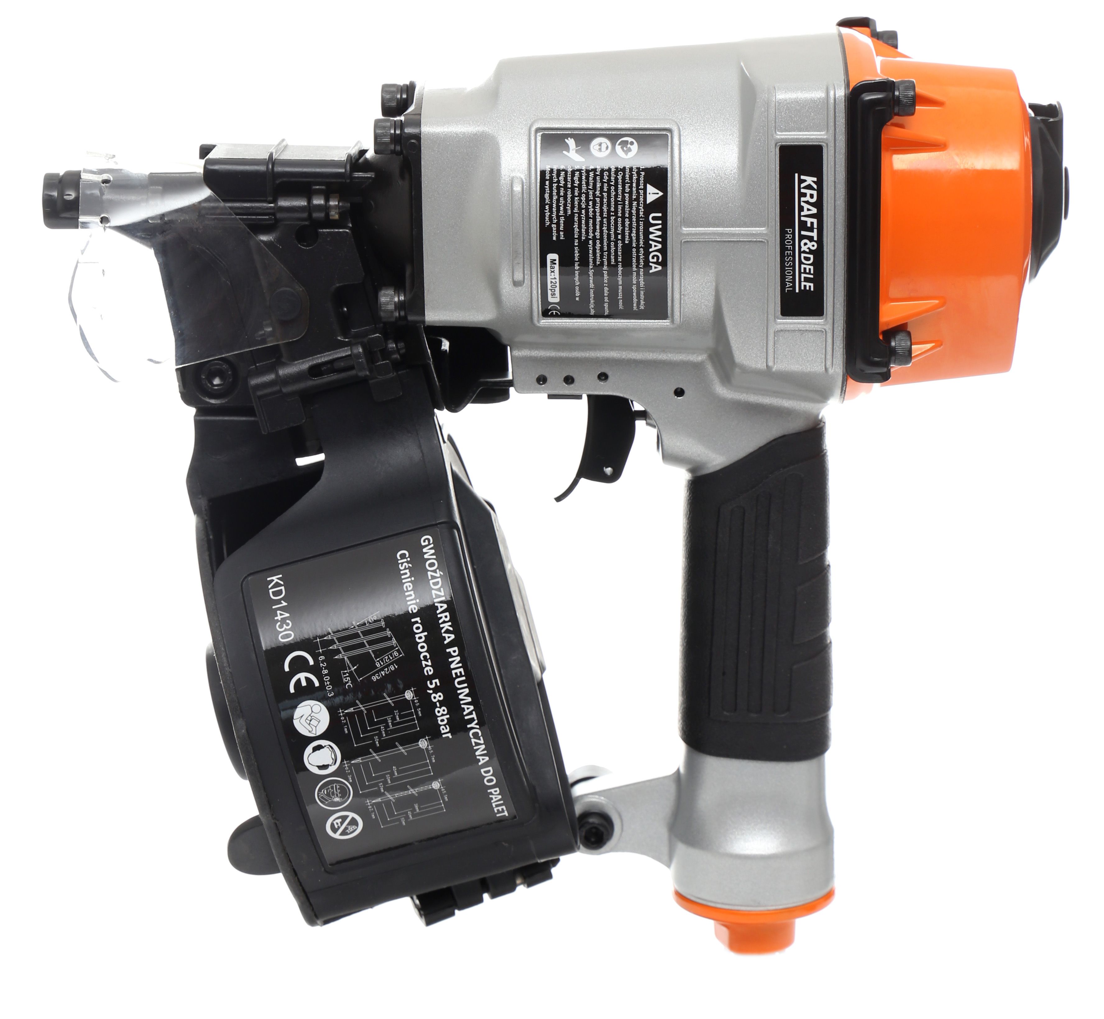 KRAFT&DELE KD1430 to profesjonalna gwoździarka pneumatyczna bębnowa do szybkiego wbijania gwoździ w montażu i naprawie palet oraz w pracach konstrukcyjnych. Stabilny korpus i rozwiązania zwiększające bezpieczeństwo pracy pomagają utrzymać tempo bez niepotrzebnych przestojów.