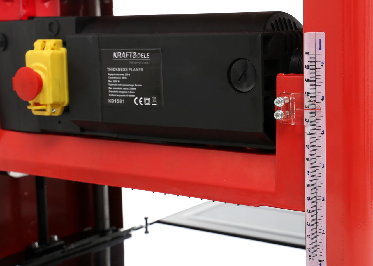 Grubościówka KD1581 to stacjonarna strugarka do drewna przeznaczona do wyrównywania i kalibrowania grubości desek, tarcicy oraz materiałów drewnopochodnych. Silnik o mocy 2000 W zapewnia stabilną pracę przy obróbce elementów o szerokości do 160 mm.