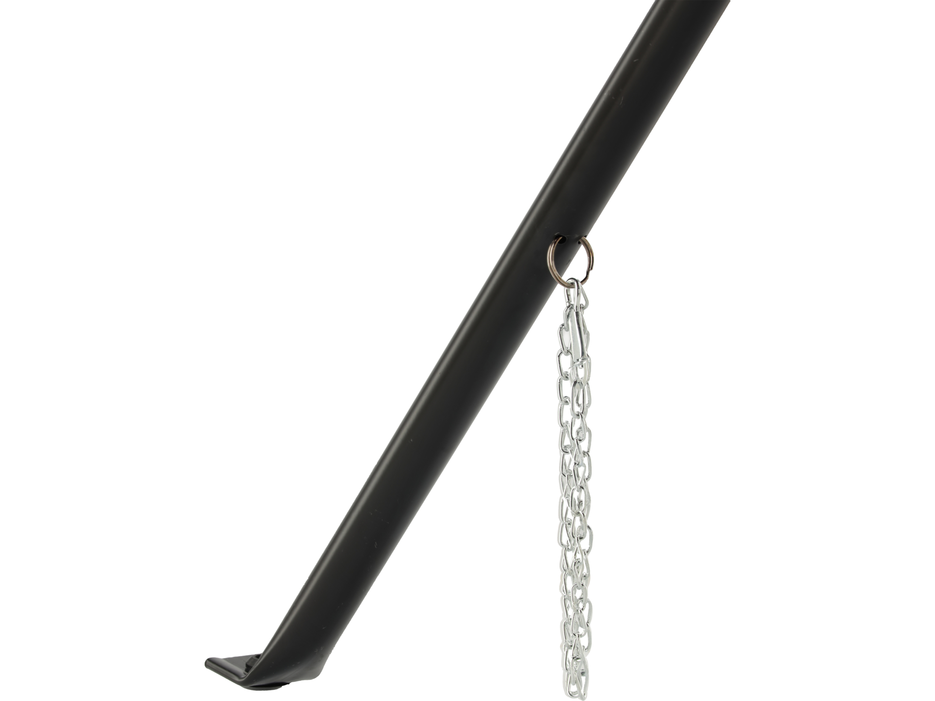 Łańcuch obejmuje rurę na całym obwodzie, rozkładając siłę docisku równomiernie i minimalizując ryzyko odkształcenia materiału. System umożliwia szybkie zamocowanie rur o różnych średnicach bez konieczności wymiany szczęk czy regulacji mechanicznych.