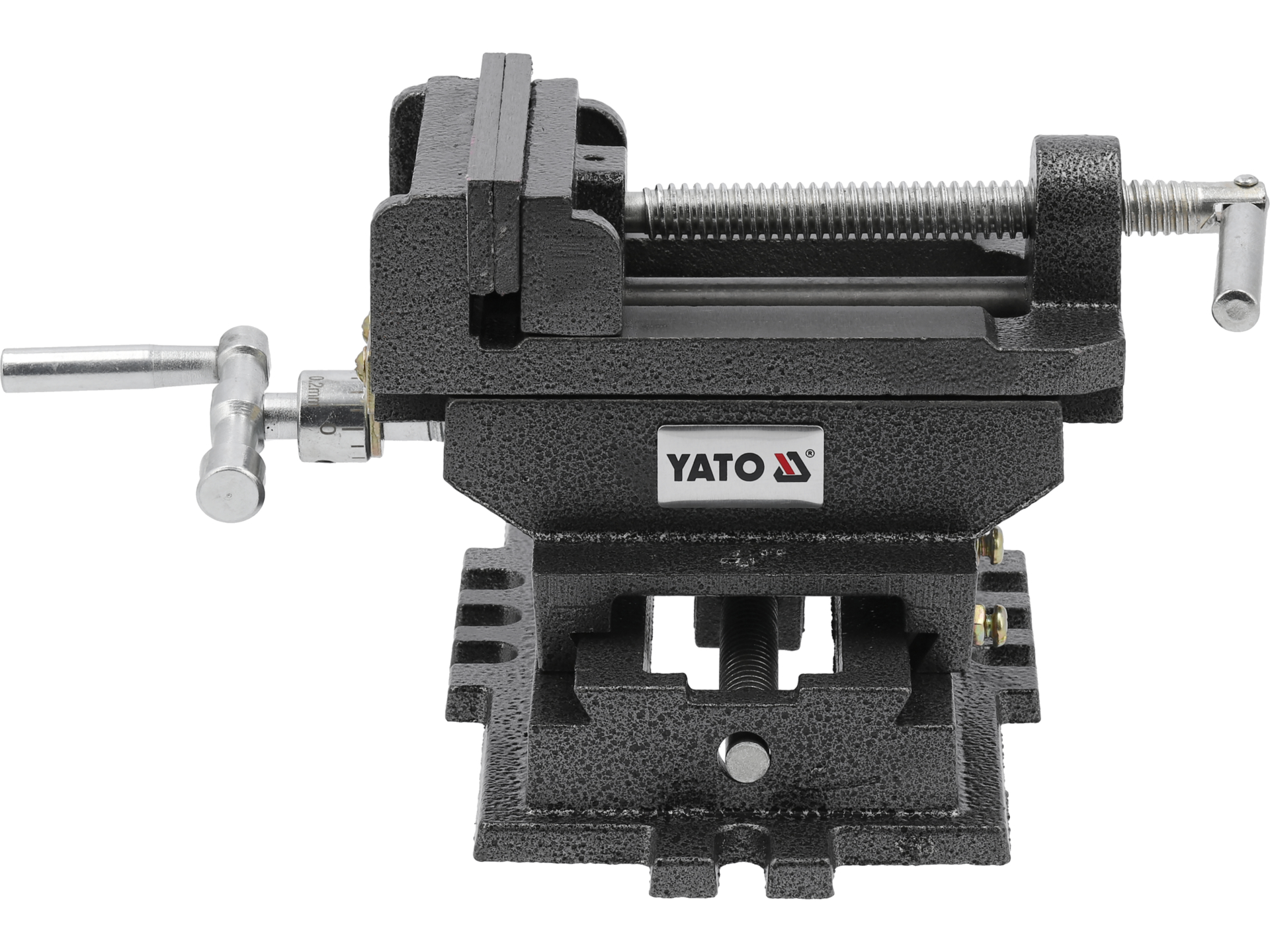 Imadło maszynowe krzyżowe o konstrukcji dwuosiowej umożliwia precyzyjne pozycjonowanie obrabianego elementu w dwóch płaszczyznach. Model wykonany z żeliwa z lakierem młotkowym, wyposażony w śrubę trapezową i wymienne szczęki o szerokości 100 mm.
