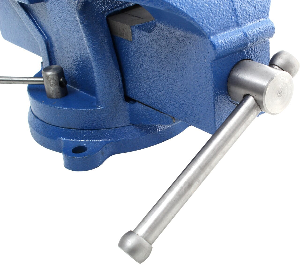 Możliwość obrotu całego imadła bez odkręcania go od stołu skraca czas zmiany orientacji detalu. Podstawa mocowana jest trzema śrubami do blatu, co zapewnia stabilność podczas pracy przy pełnym obrocie.