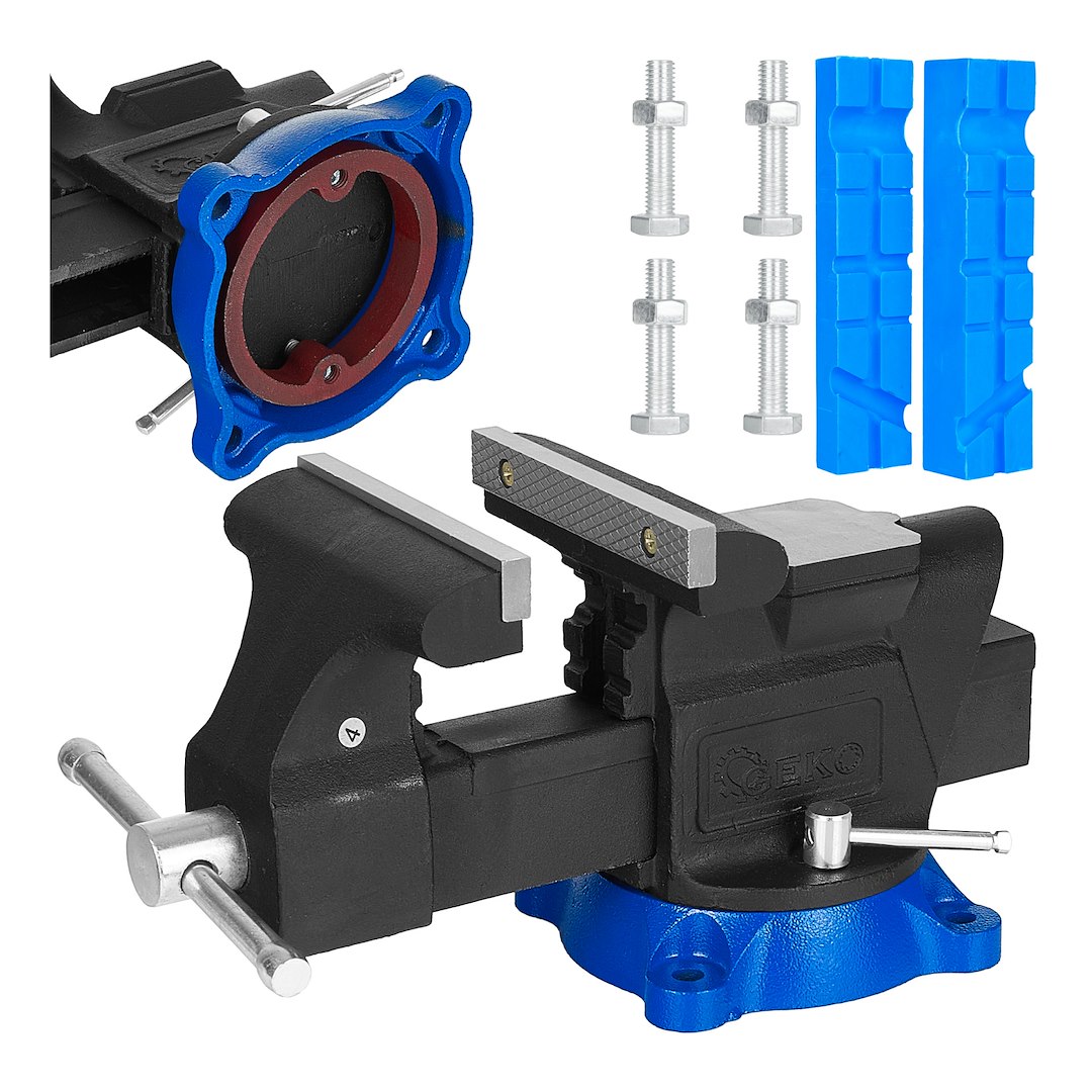 Imadło ślusarskie z mechanizmem obrotu 360° przeznaczone do stałego montażu na stole warsztatowym. Korpus z odlewu żeliwnego, hartowane szczęki o szerokości 150 mm oraz śruba trapezowa ze stali węglowej zapewniają trwałość i stabilność podczas intensywnych prac metalowych, montażowych i serwisowych.