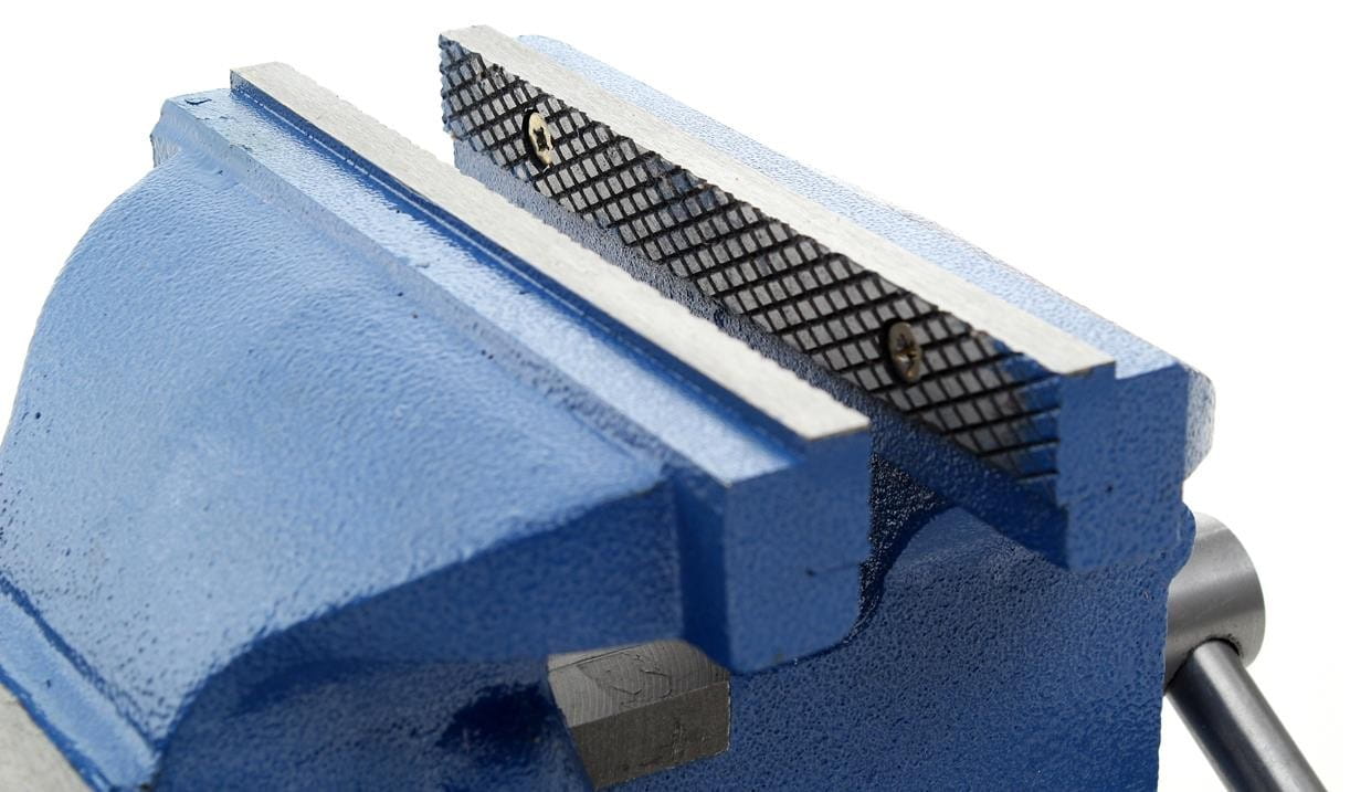 Podstawa umożliwia obrót korpusu imadła o 360°, co pozwala ustawić obrabiany element pod optymalnym kątem bez konieczności zmiany pozycji operatora lub przestawiania przedmiotu. Szczególnie przydatne przy pracach wymagających dostępu z różnych stron.