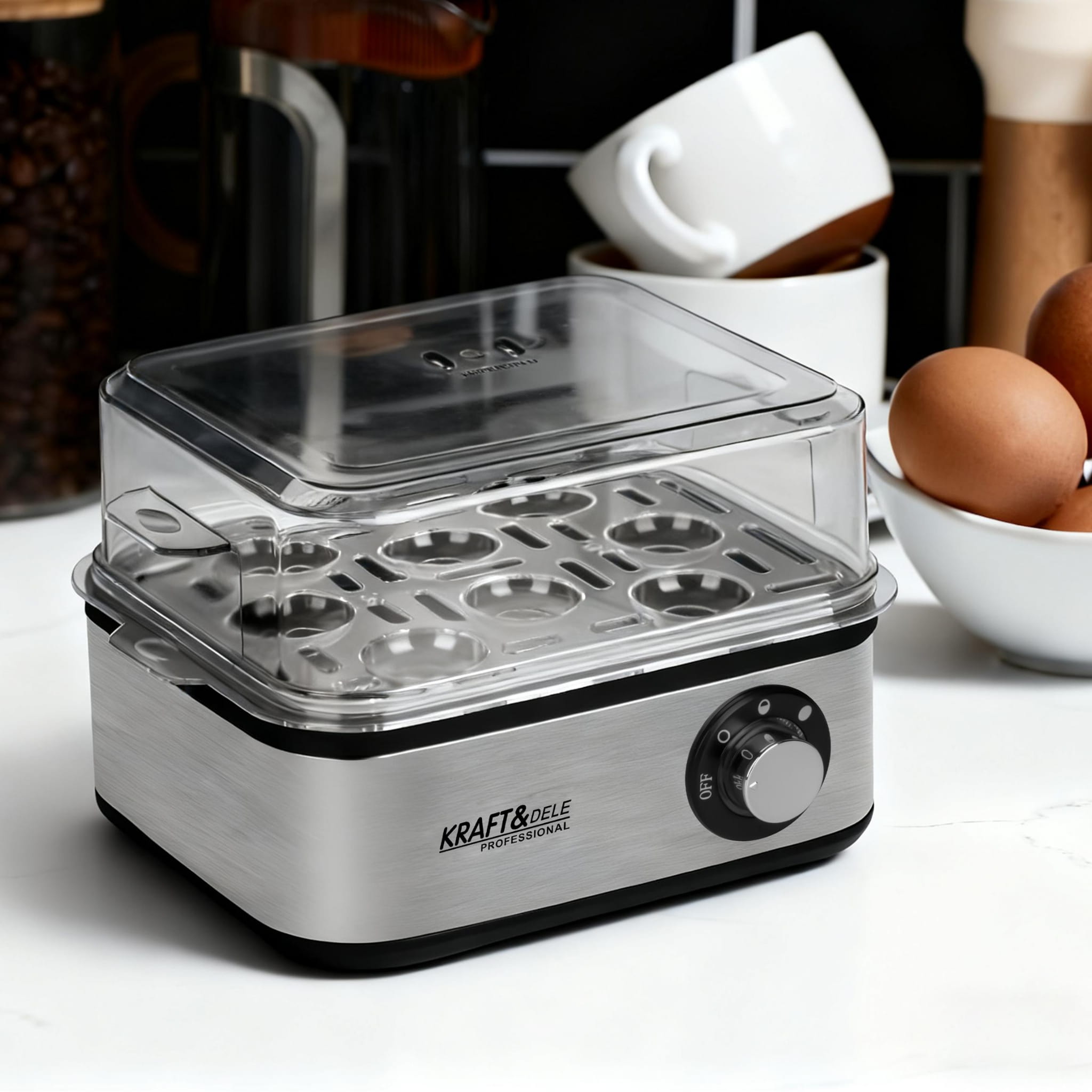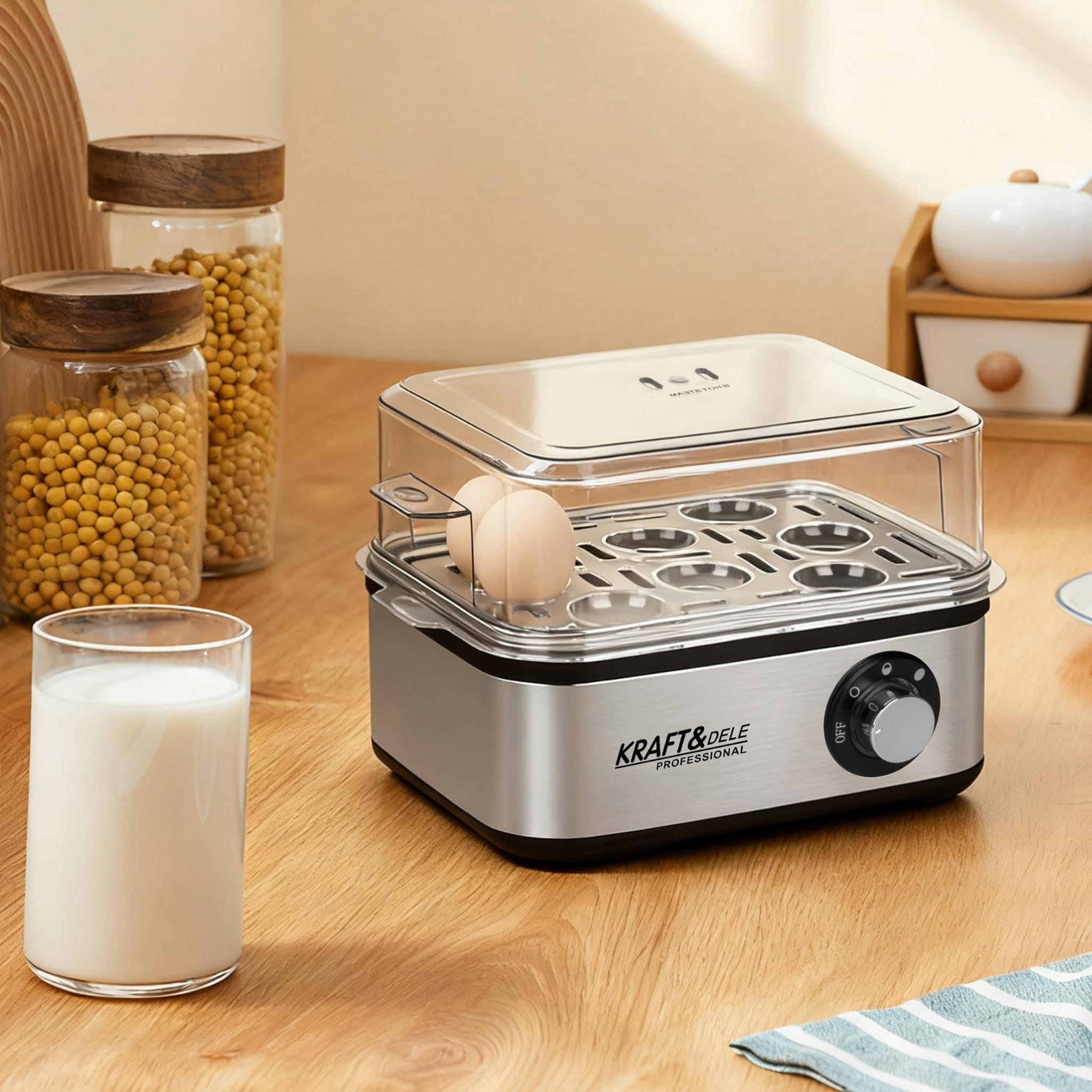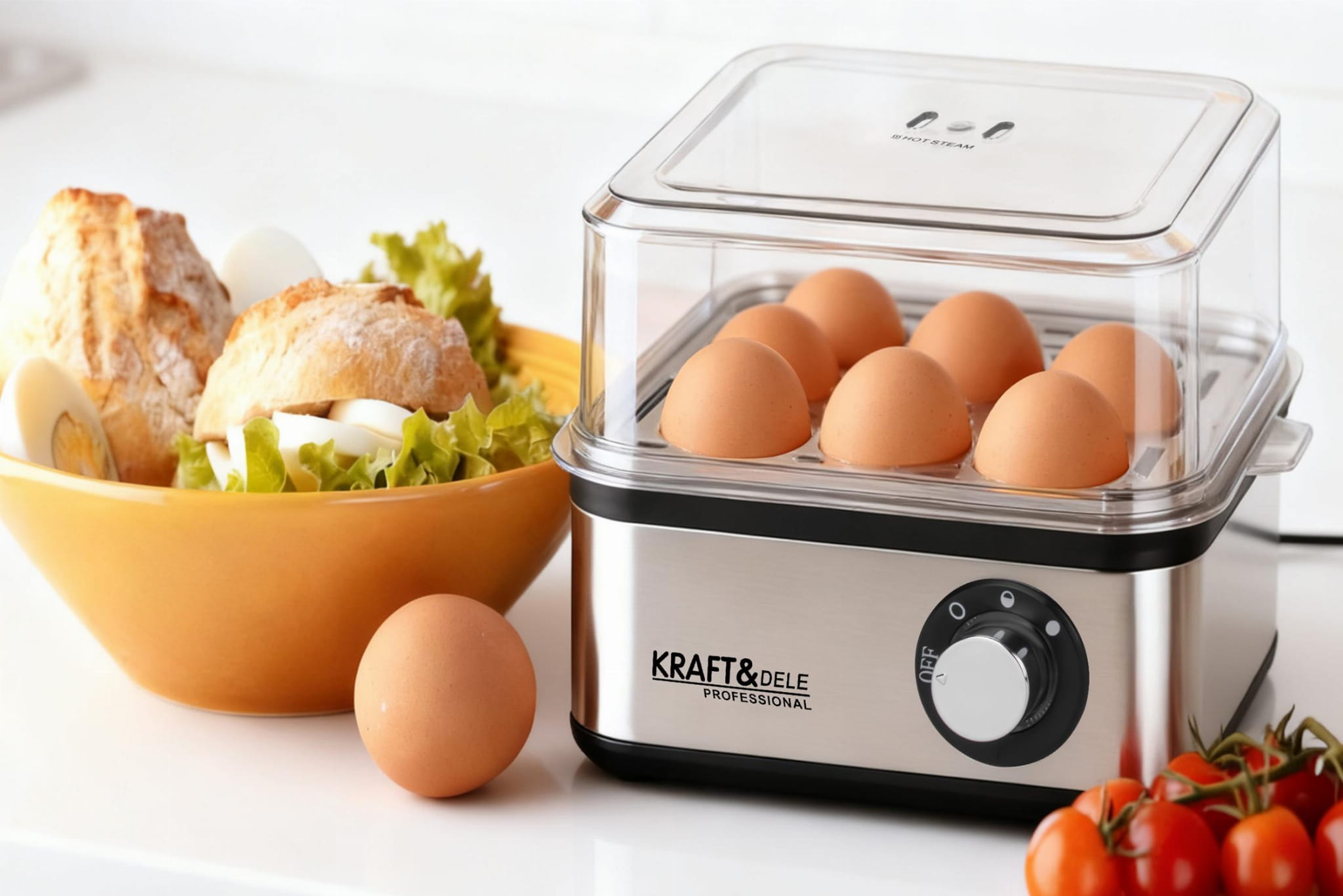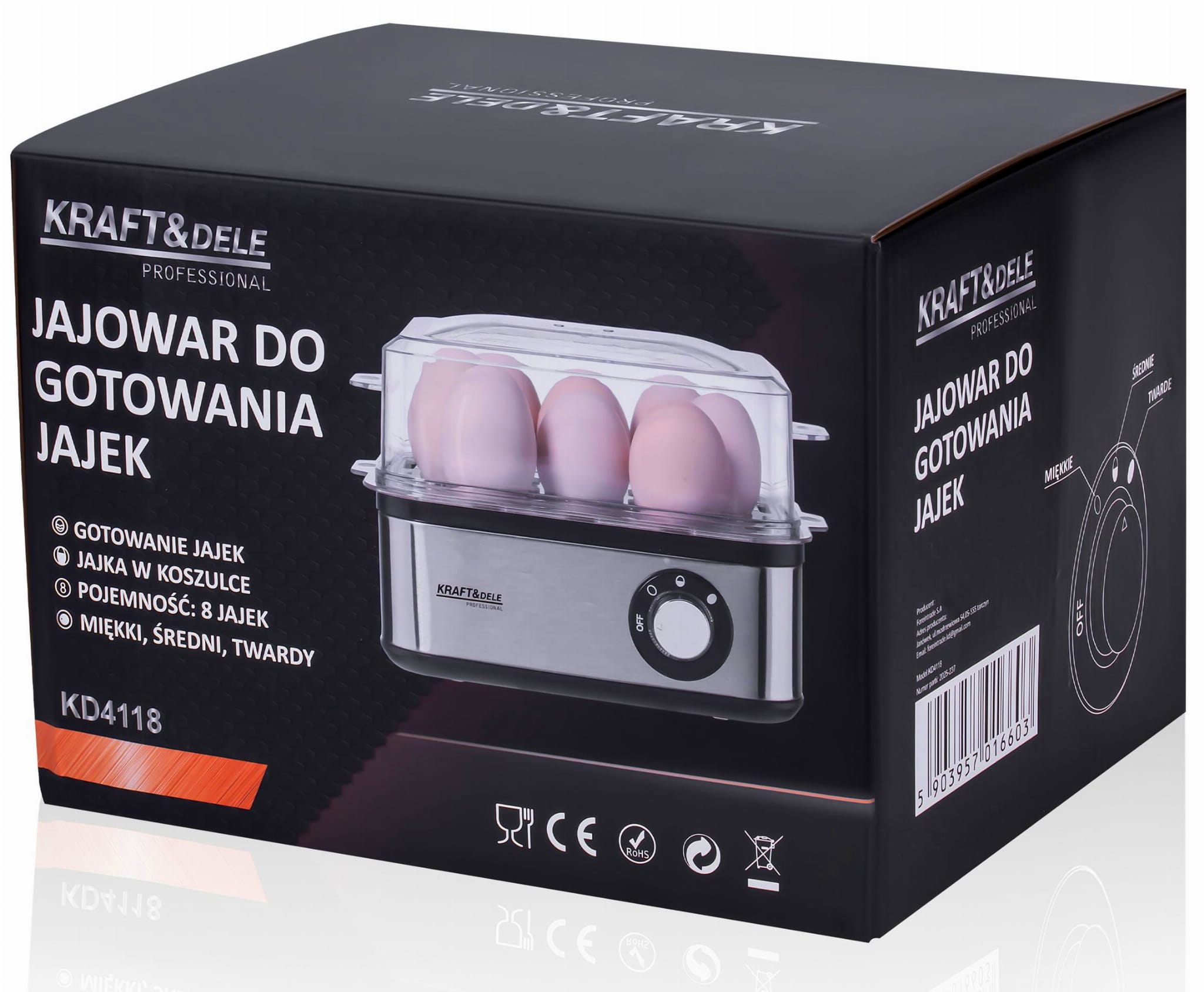 Elektryczny jajowar KD4118 to urządzenie kuchenne przeznaczone do gotowania jajek na parze. Umożliwia przygotowanie do 8 jajek jednocześnie z wyborem trzech stopni ugotowania, bez konieczności kontrolowania czasu ani temperatury wody na kuchence.