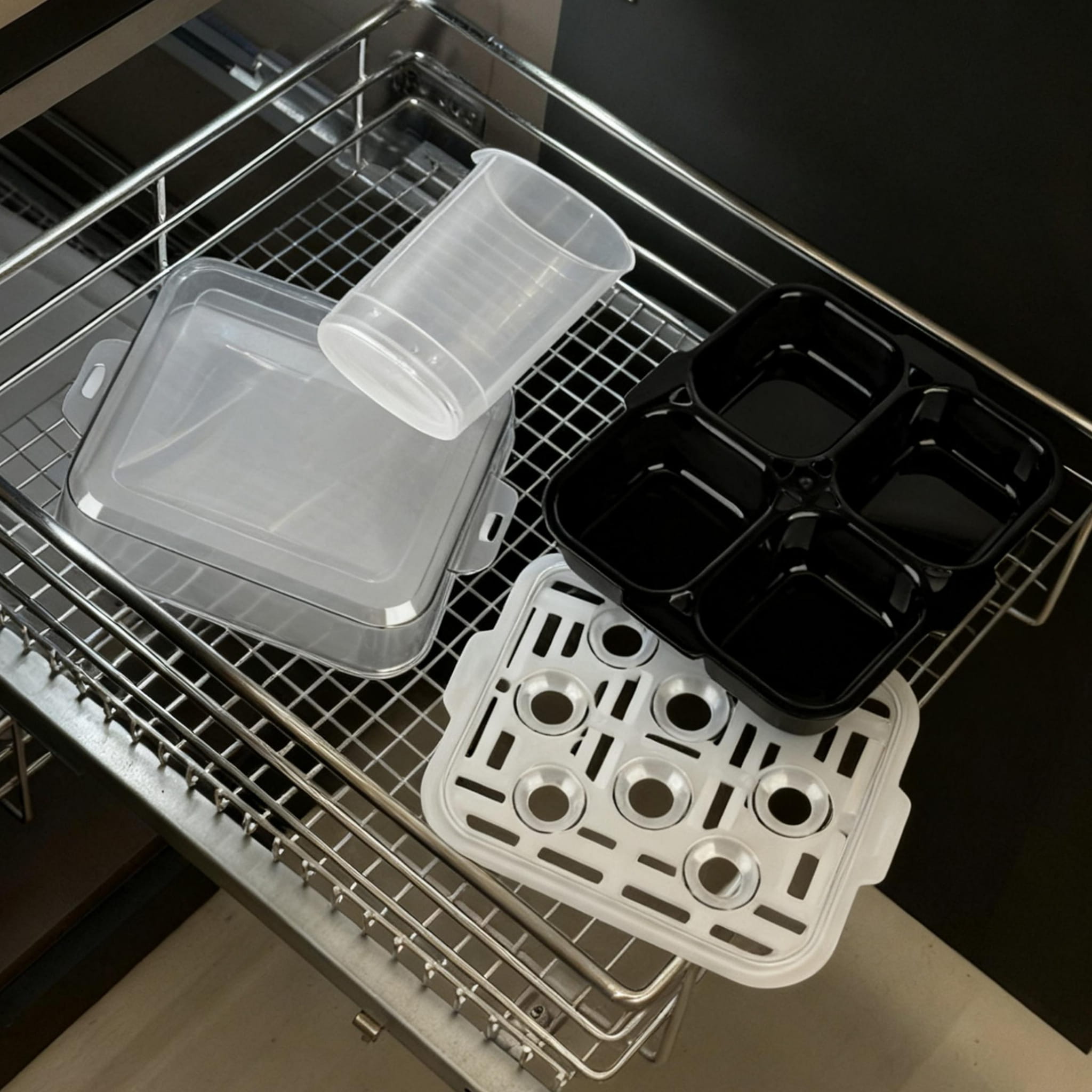 Podstawka na jajka mieści do 8 sztuk jednocześnie. Możliwe jest również gotowanie mniejszej liczby jajek — ilość wody należy wtedy dostosować zgodnie ze wskazaniami miarki. Większa pojemność skraca czas przygotowania śniadania dla kilku osób.