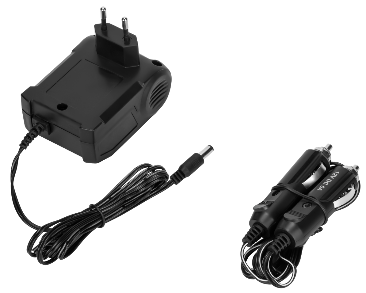 Przed pierwszym użyciem urządzenie należy naładować za pomocą dołączonego zasilacza AC/DC (220–240V, 50Hz). Ładowanie odbywa się przez gniazdo sieciowe lub opcjonalnie przez adapter zapalniczki samochodowej 12V dołączony w zestawie. Ze względu na zastosowanie akumulatora AGM urządzenie powinno być przechowywane w stanie naładowanym i doładowywane co kilka miesięcy w przypadku dłuższego przechowywania — akumulatory kwasowo-ołowiowe ulegają trwałemu uszkodzeniu przy głębokim rozładowaniu.