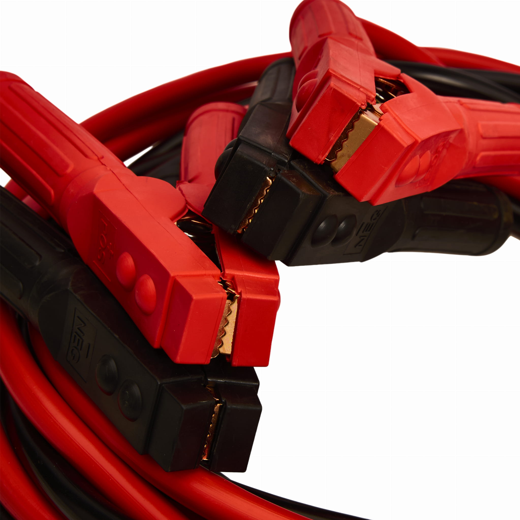 Szeroki rozstaw szczęk klem oraz mocne sprężyny zapewniają stabilne mocowanie do biegunów akumulatora. Pewny kontakt elektryczny jest kluczowy dla bezpiecznego i skutecznego przepływu prądu — luźne połączenie może powodować iskrzenie lub brak rozruchu.