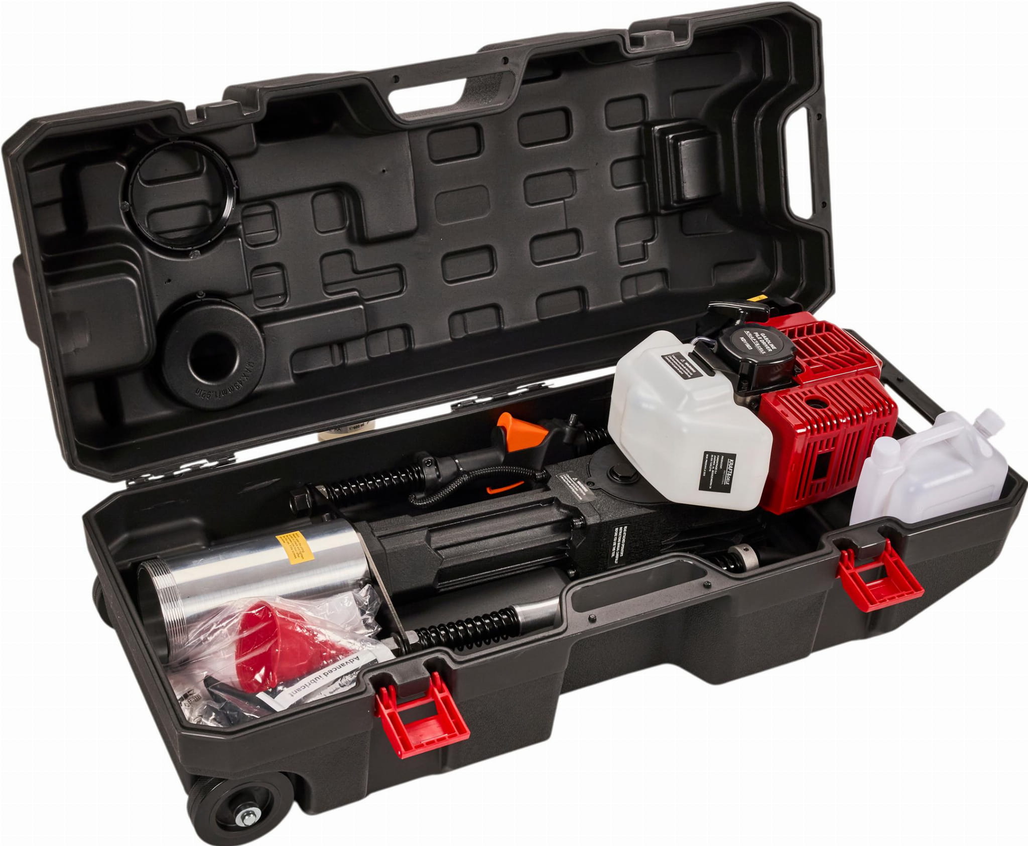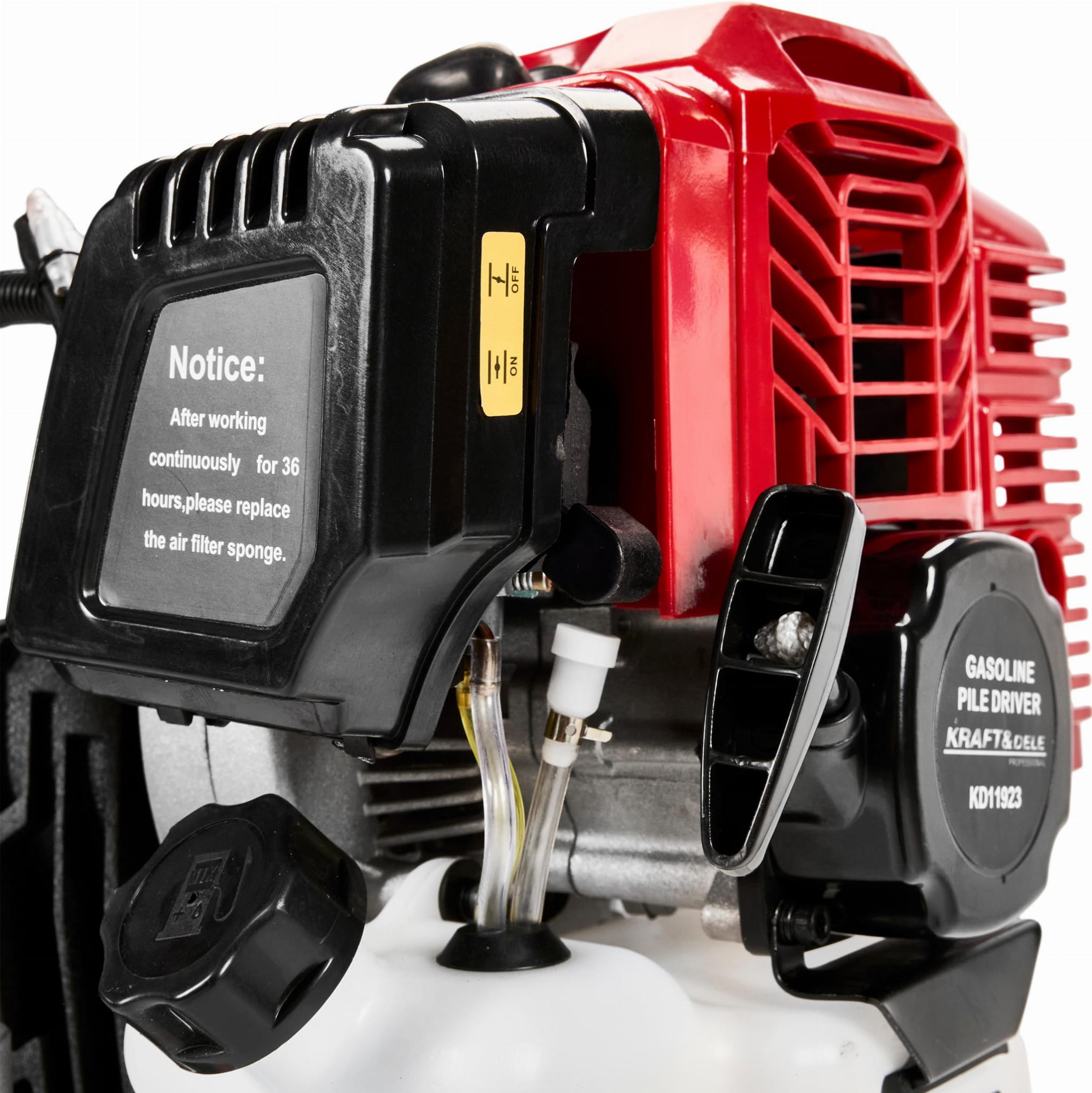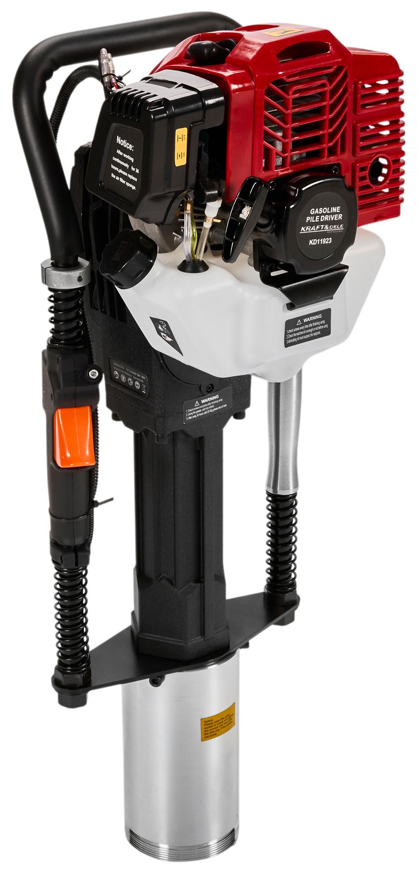 Spalinowy wbijak do słupków ogrodzeniowych i pali z silnikiem jednocylindrowym 2-suwowym o mocy 1,9 kW. Urządzenie przeznaczone do mechanicznego wbijania elementów o przekroju okrągłym do 100 mm w grunt nieutwardzony, bez konieczności podłączenia do sieci elektrycznej.