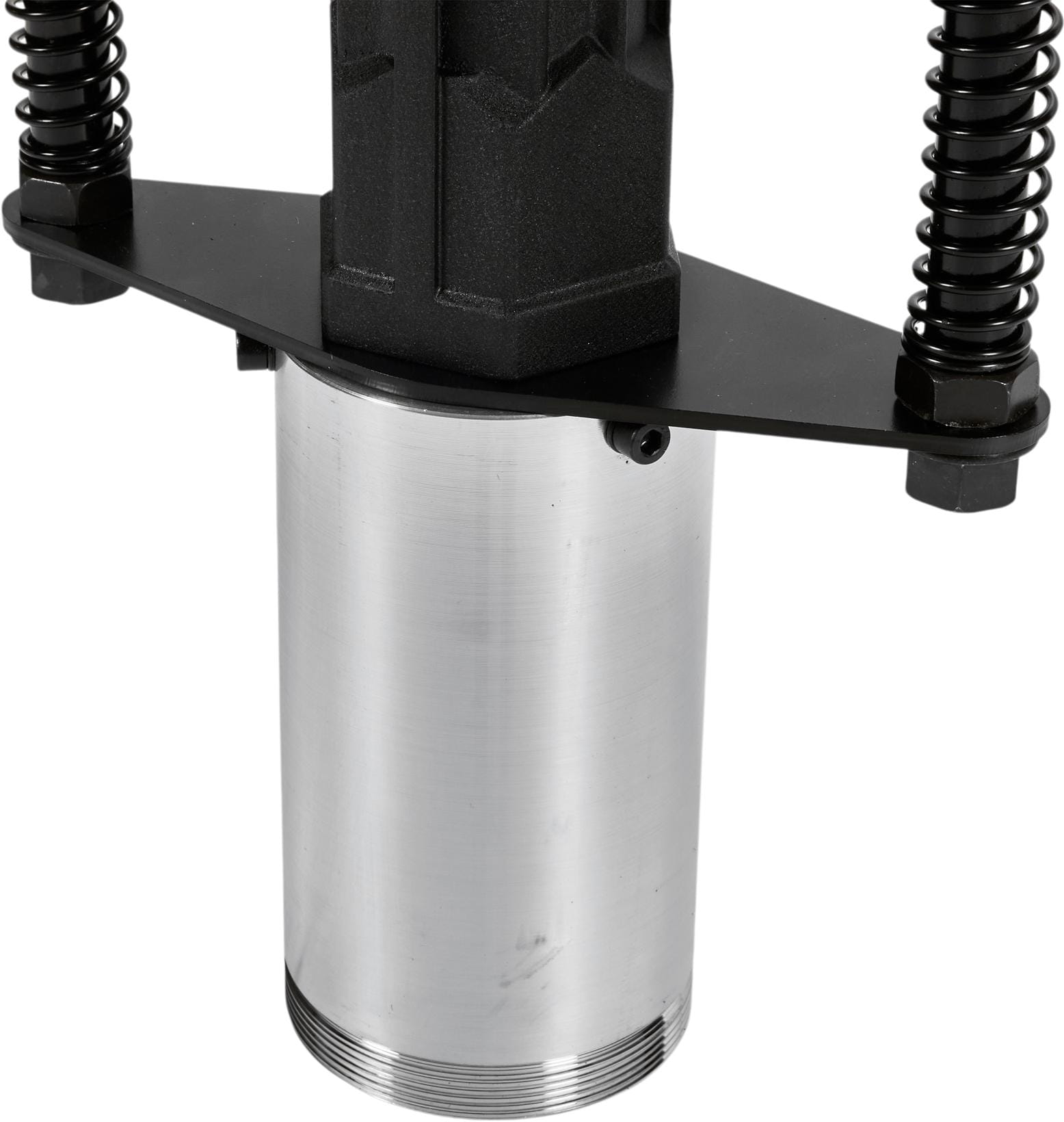 Wymienne pierścienie redukcyjne dopasowują otwór prowadzący bijaka do konkretnej średnicy słupka. Właściwe dopasowanie zapobiega przesuwaniu się elementu podczas wbijania i zapewnia pionowe prowadzenie pala. Zestaw obejmuje średnice 49, 69 i 100 mm.
