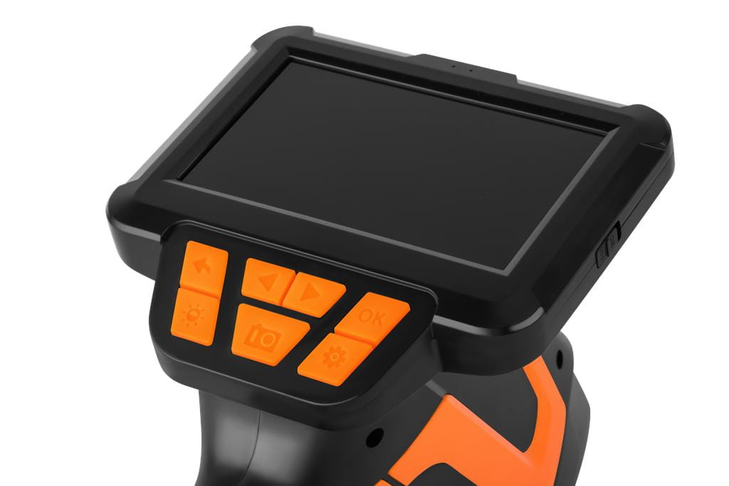 Wbudowany kolorowy wyświetlacz eliminuje potrzebę podłączania smartfona lub laptopa. Obraz z kamery wyświetlany jest w czasie rzeczywistym bezpośrednio na ekranie urządzenia, co przyspiesza pracę w terenie i ogranicza liczbę potrzebnego wyposażenia.