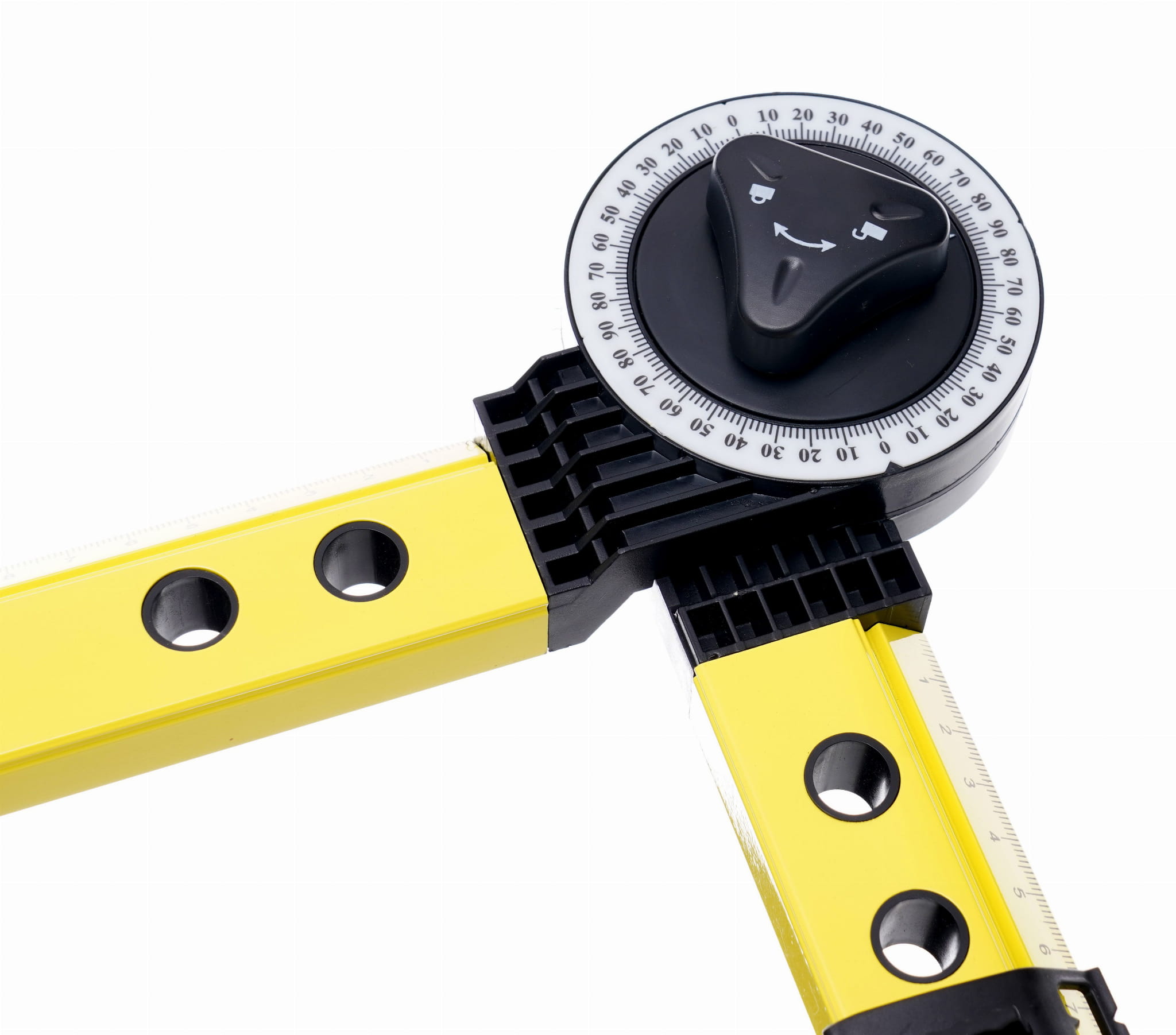 Ramiona narzędzia można rozstawić i zablokować, uzyskując funkcję cyrkla do trasowania łuków i okręgów. Wbudowany przymiar liniowy o długości 500 mm pozwala na bezpośredni odczyt wymiarów bez potrzeby sięgania po dodatkową taśmę mierniczą.