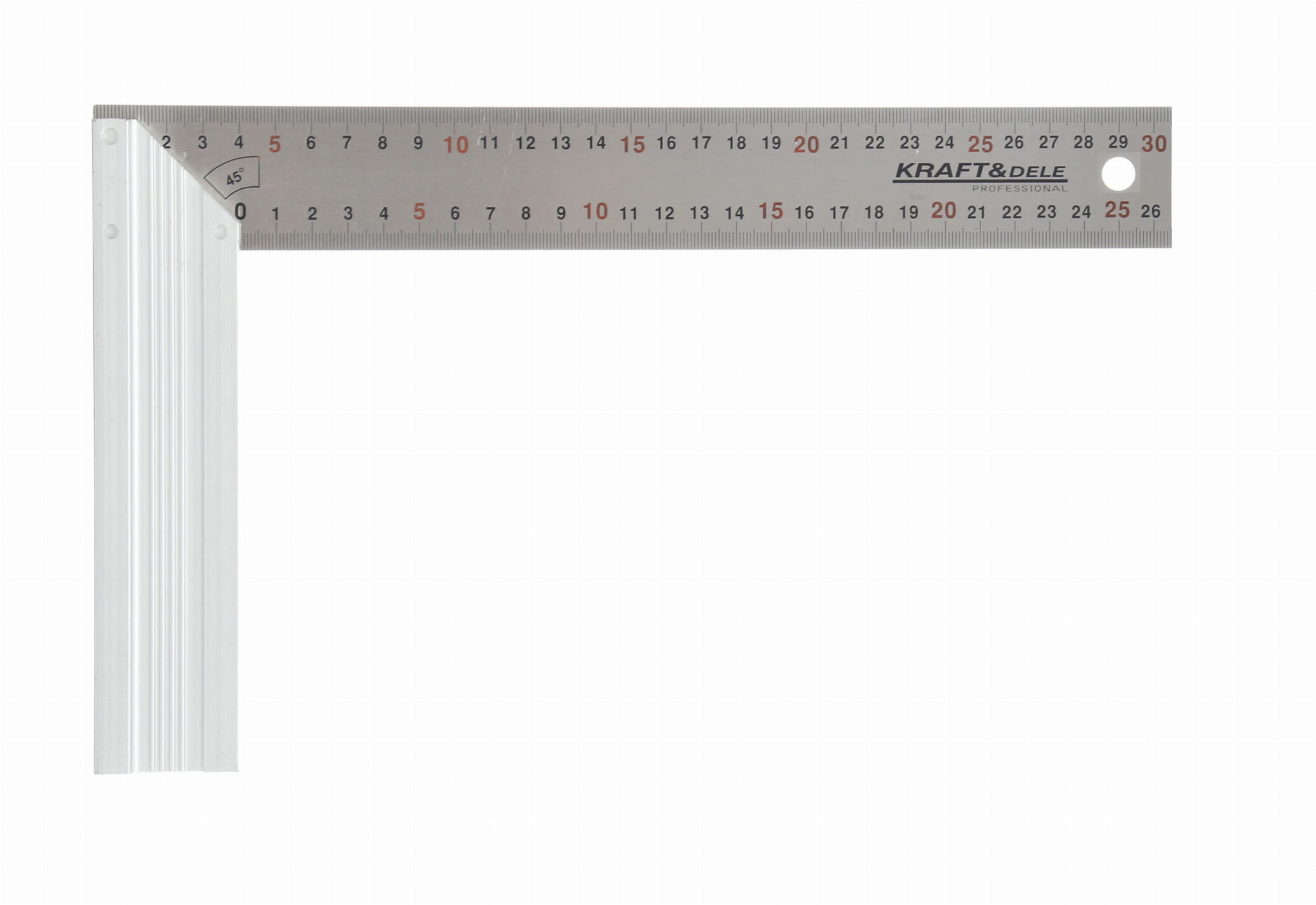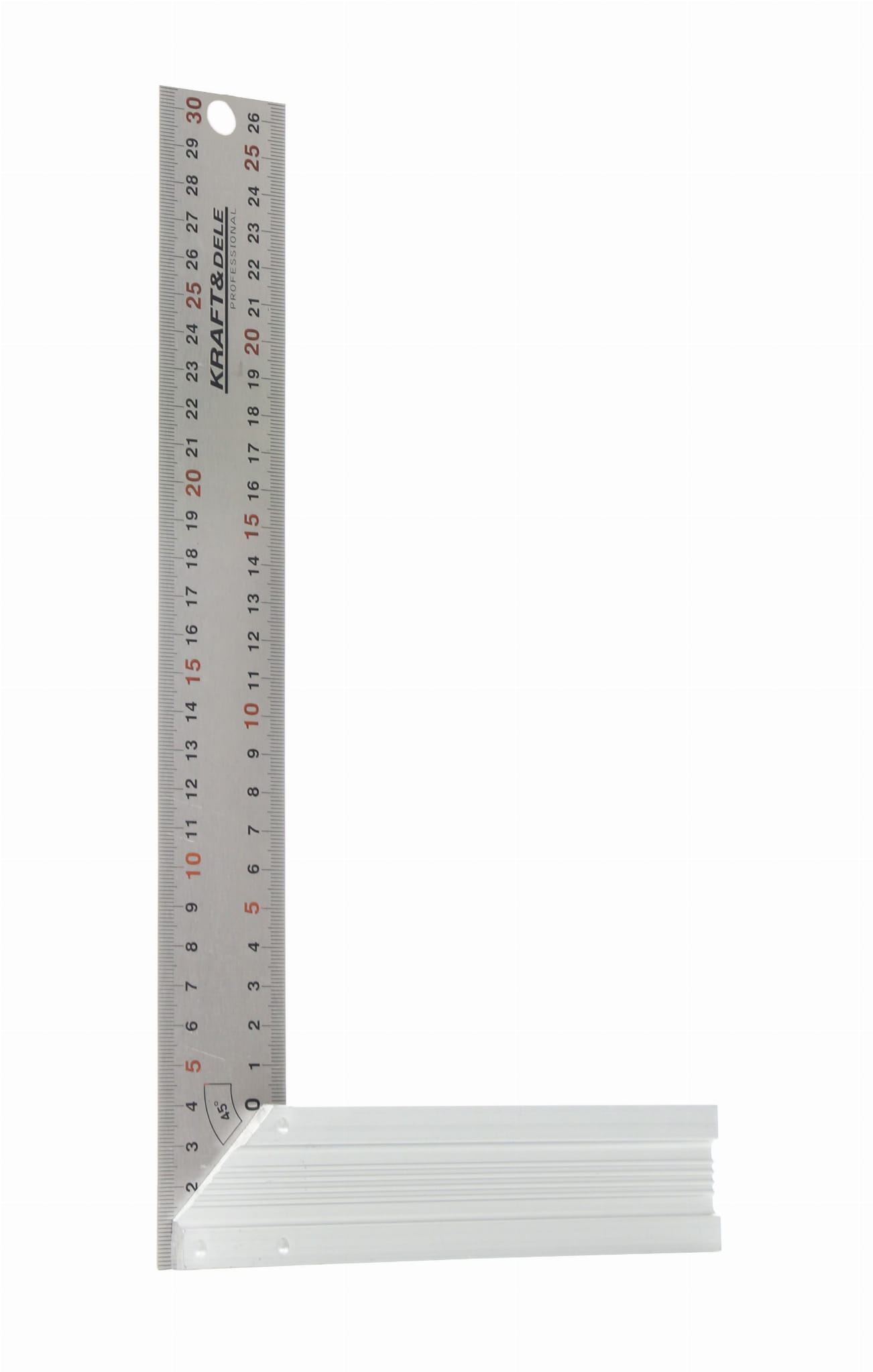 Ramię o długości 30 cm pozwala na wytyczanie prostopadłych na deskach, belkach i profilach o standardowych szerokościach stosowanych w budownictwie i stolarstwie. Zapewnia wystarczający zasięg przy typowych elementach konstrukcyjnych.