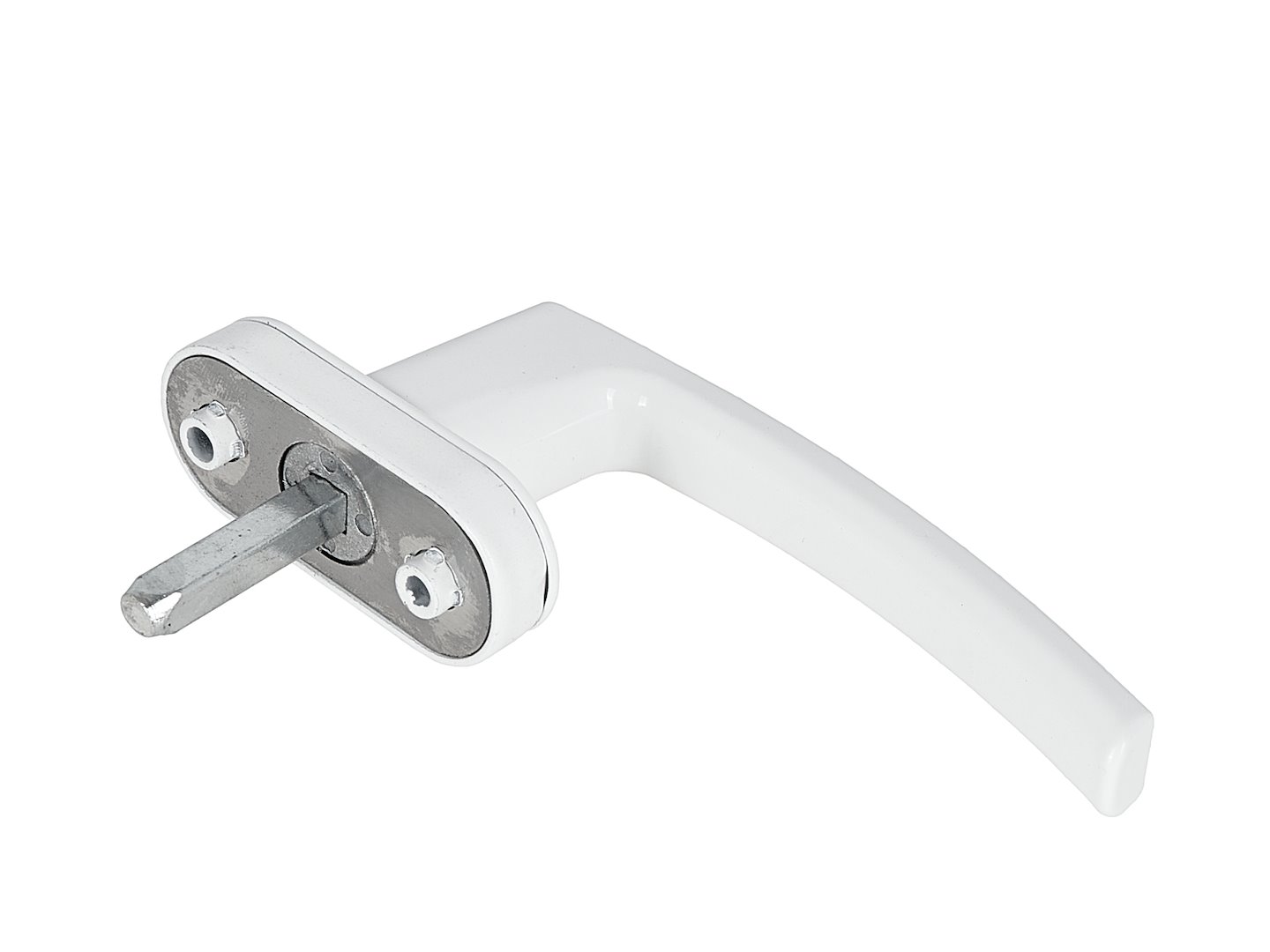 Klamka okienna wykonana z aluminium, przeznaczona do okien PCV, drewnianych oraz aluminiowych. Klasyczna forma i biały kolor pozwalają na zastosowanie zarówno w nowoczesnych, jak i tradycyjnych wnętrzach. Zestaw zawiera śruby mocujące — produkt gotowy do montażu bez konieczności dokupowania akcesoriów.