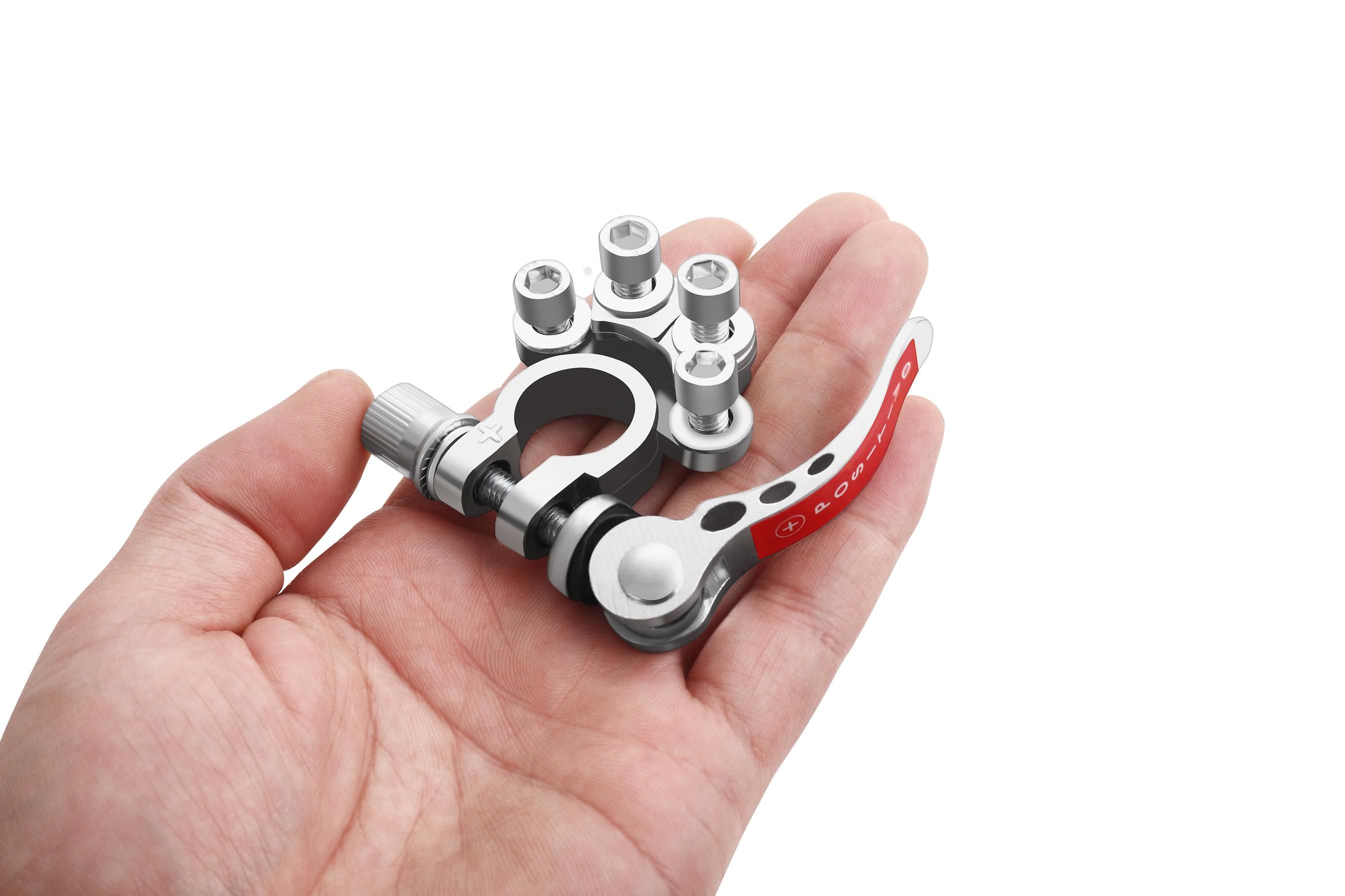 W komplecie otrzymujesz dwie klemy (PLUS/MINUS) oraz klucz imbusowy, dzięki czemu montaż jest prosty i powtarzalny.