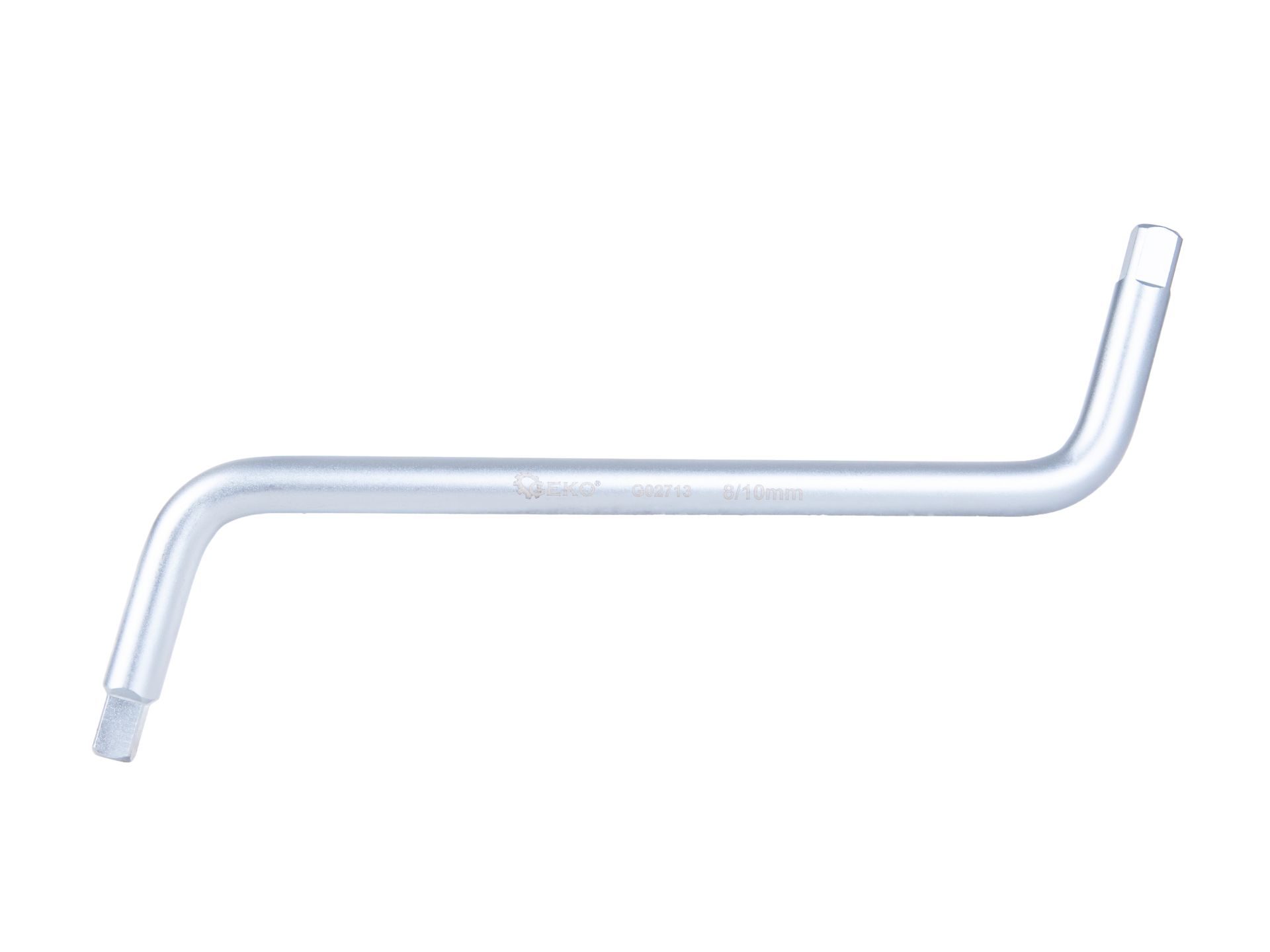 Stalowy klucz z końcówkami kwadratowymi 8 mm i 10 mm, przeznaczony do odkręcania i dokręcania korków miski olejowej w samochodach osobowych i dostawczych. Jednolita konstrukcja bez ruchomych elementów zapewnia pewne przeniesienie momentu obrotowego nawet przy zapieczonych korkach.