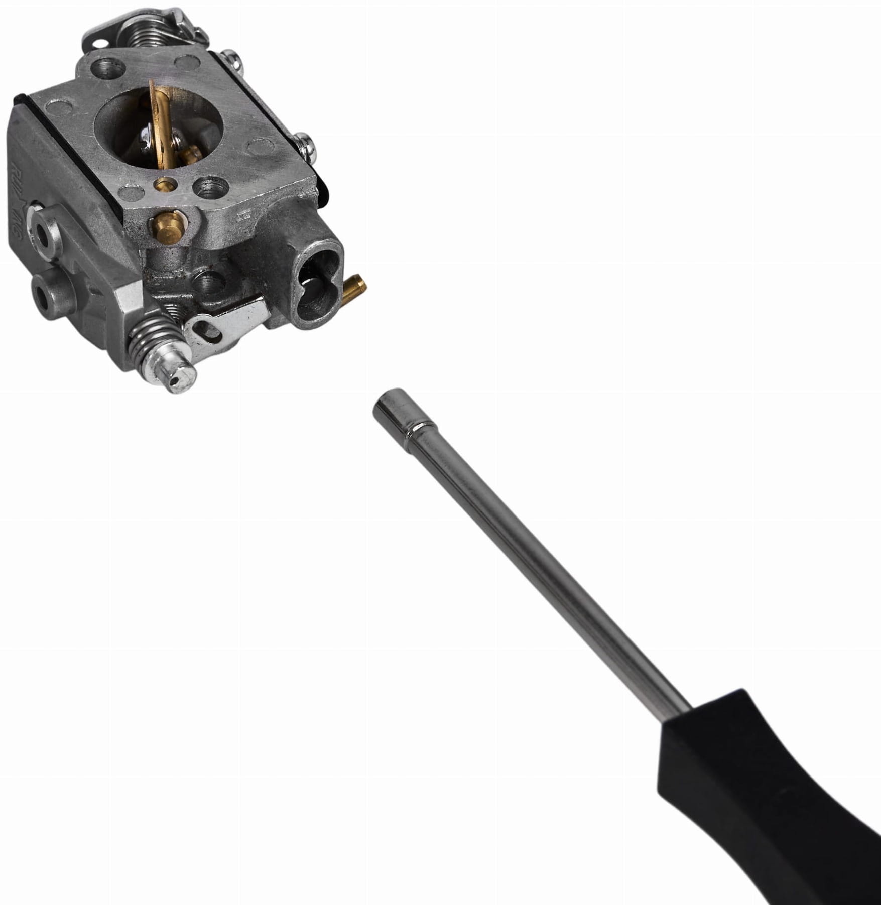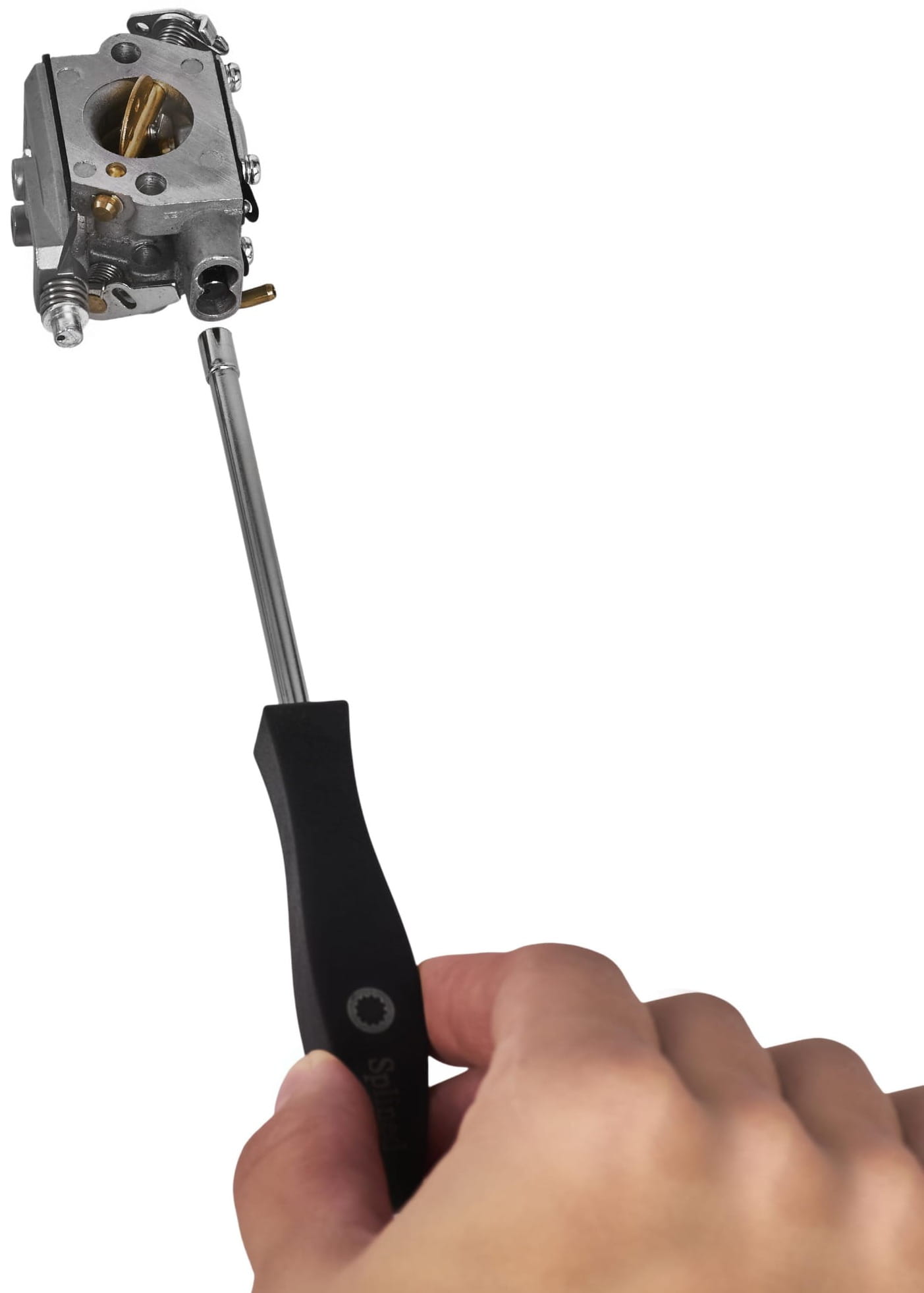 Uchwyt z tworzywa zapewnia izolację elektryczną oraz pewny chwyt podczas precyzyjnych czynności regulacyjnych. Forma rękojeści pozwala na kontrolowane obracanie narzędzia małymi krokami – co jest istotne przy ustawianiu składu mieszanki paliwowej.