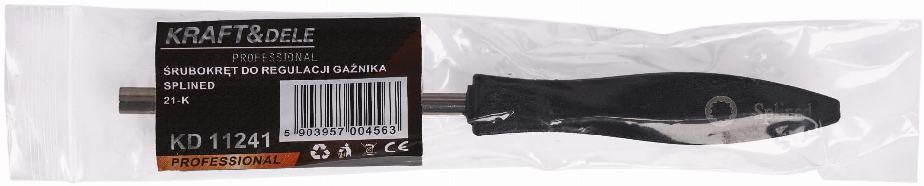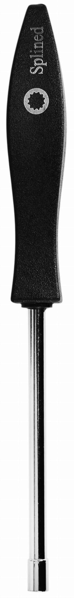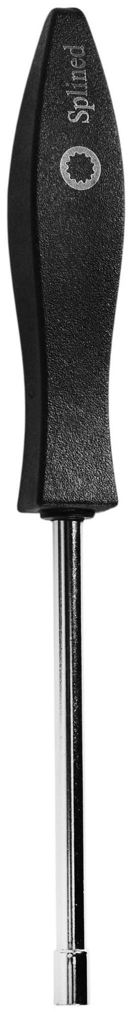 Specjalistyczny wkrętak serwisowy z końcówką typu SPLINED, przeznaczony do precyzyjnej regulacji śrub gaźnika w urządzeniach ogrodniczych i budowlanych. Narzędzie wykonane ze stali nierdzewnej z rękojeścią z tworzywa sztucznego, dostosowane do śrub regulacyjnych stosowanych w gaźnikach małych silników spalinowych.