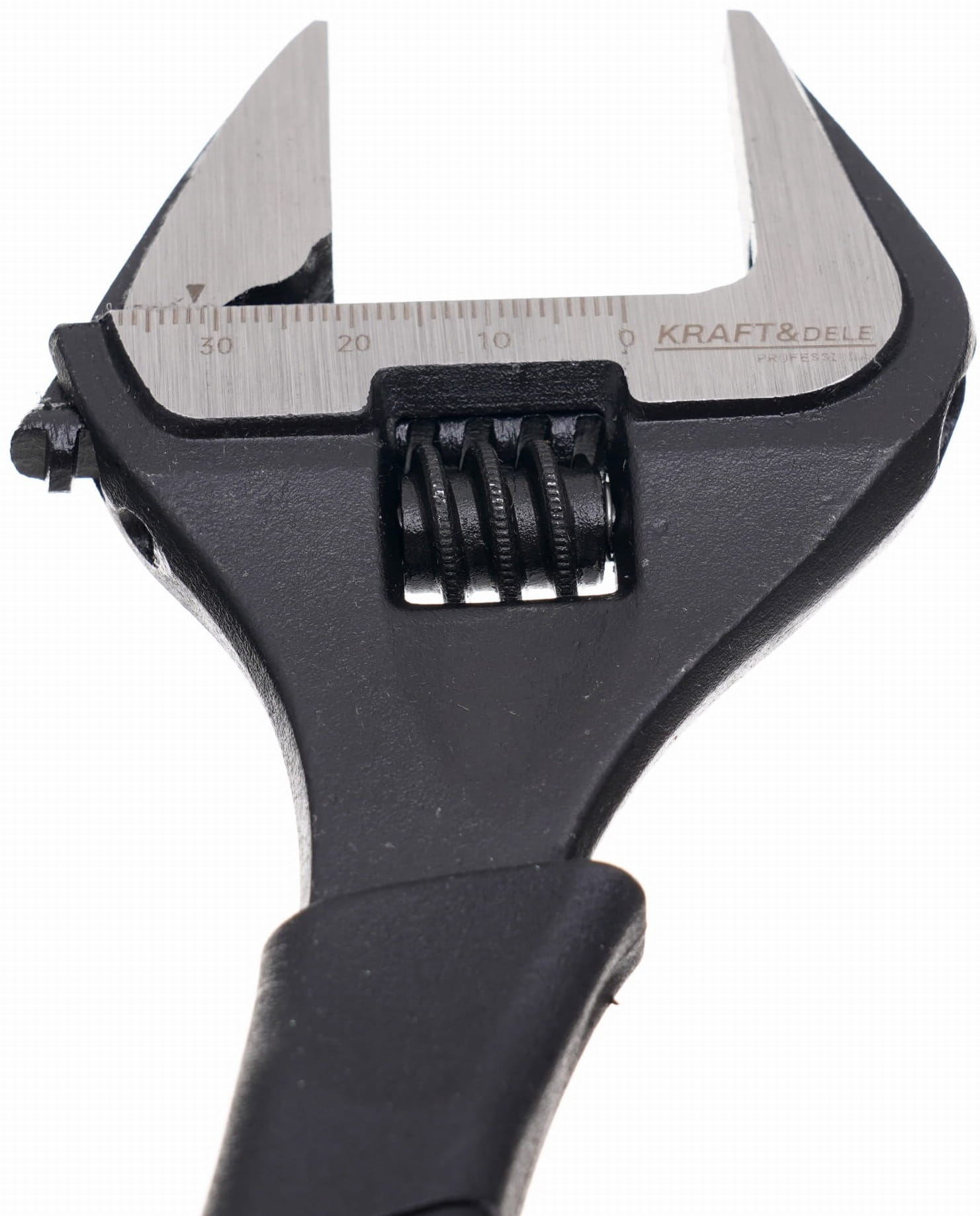 Rozstaw 0–39 mm odpowiada kluczom płaskim w zakresie od 6 do 38 mm (norma metryczna). Przed zakupem warto zmierzyć szerokość nakrętki lub rury mierzoną na płasko — jeśli wartość nie przekracza 39 mm, klucz KD10042 obejmie dany element. Dla rur podawany jest zazwyczaj średnica zewnętrzna, a nie rozmiar klucza, dlatego przy rurach należy zmierzyć rzeczywisty wymiar złączki lub nakrętki.