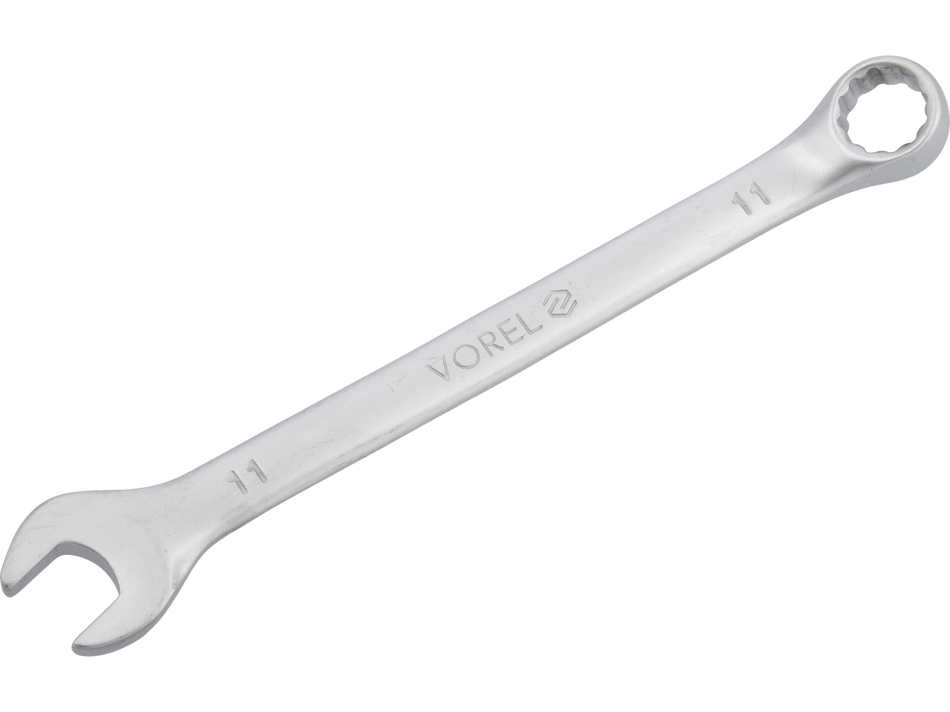 Klucz płasko-oczkowy z kuciem matrycowym, wykonany ze stali chromowo-wanadowej z satynowym wykończeniem. Narzędzie warsztatowe łączące funkcję klucza płaskiego i oczkowego z dwunastokątnym profilem.