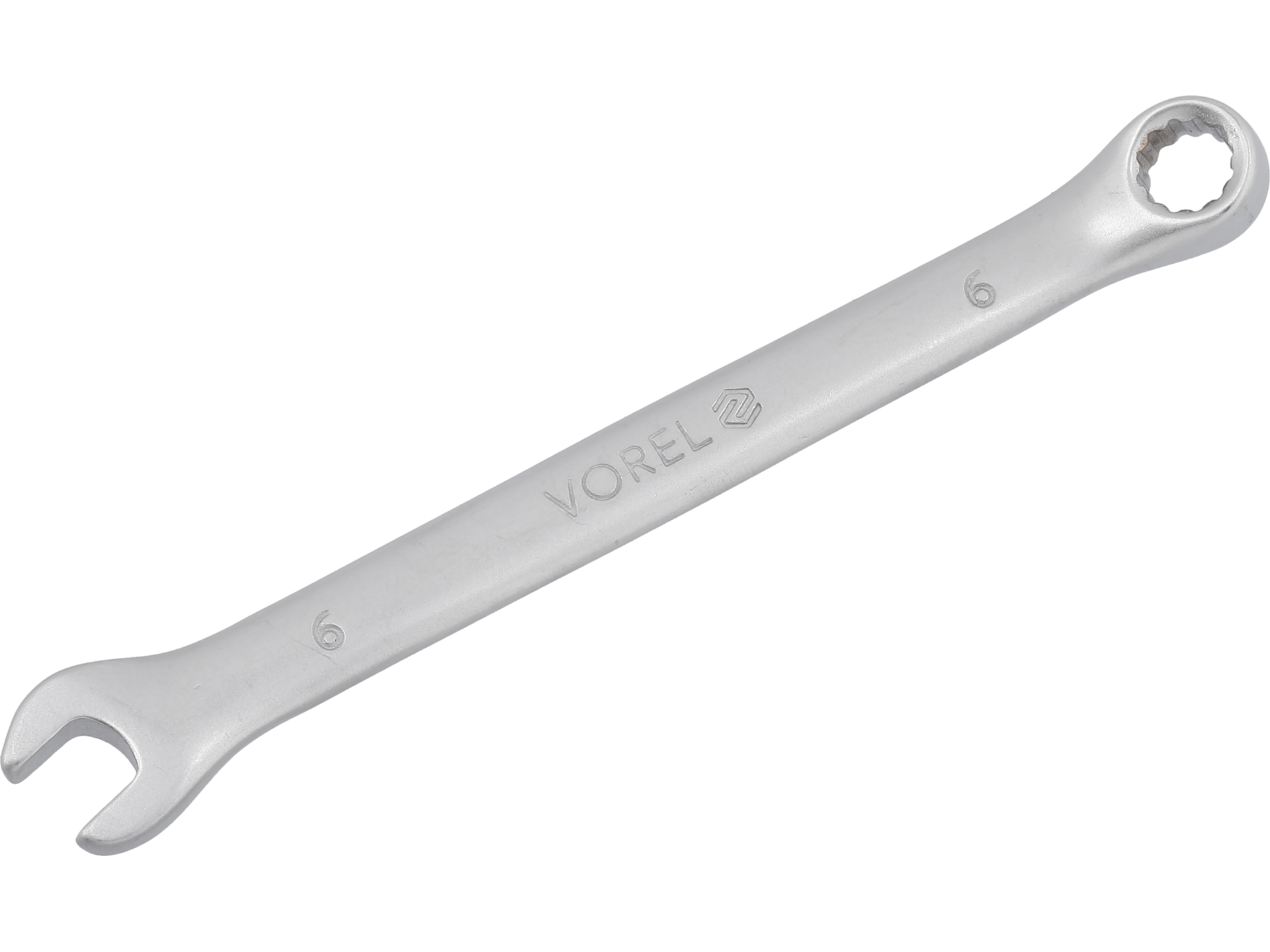 Klucz płasko-oczkowy 6 mm z dwunastokątną końcówką oczkową, wykonany metodą kucia matrycowego ze stali chromowo-wanadowej. Satynowe wykończenie powierzchni zapewnia właściwości antypoślizgowe podczas pracy.