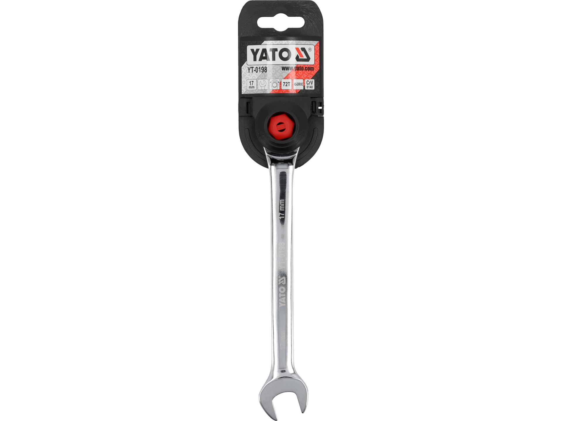Klucz płasko-oczkowy z grzechotką 24 mm łączy funkcjonalność tradycyjnego klucza płasko-oczkowego z mechanizmem grzechotkowym po stronie oczkowej. Rozwiązanie to eliminuje konieczność wielokrotnego zakładania klucza podczas odkręcania lub dokręcania śrub i nakrętek.
