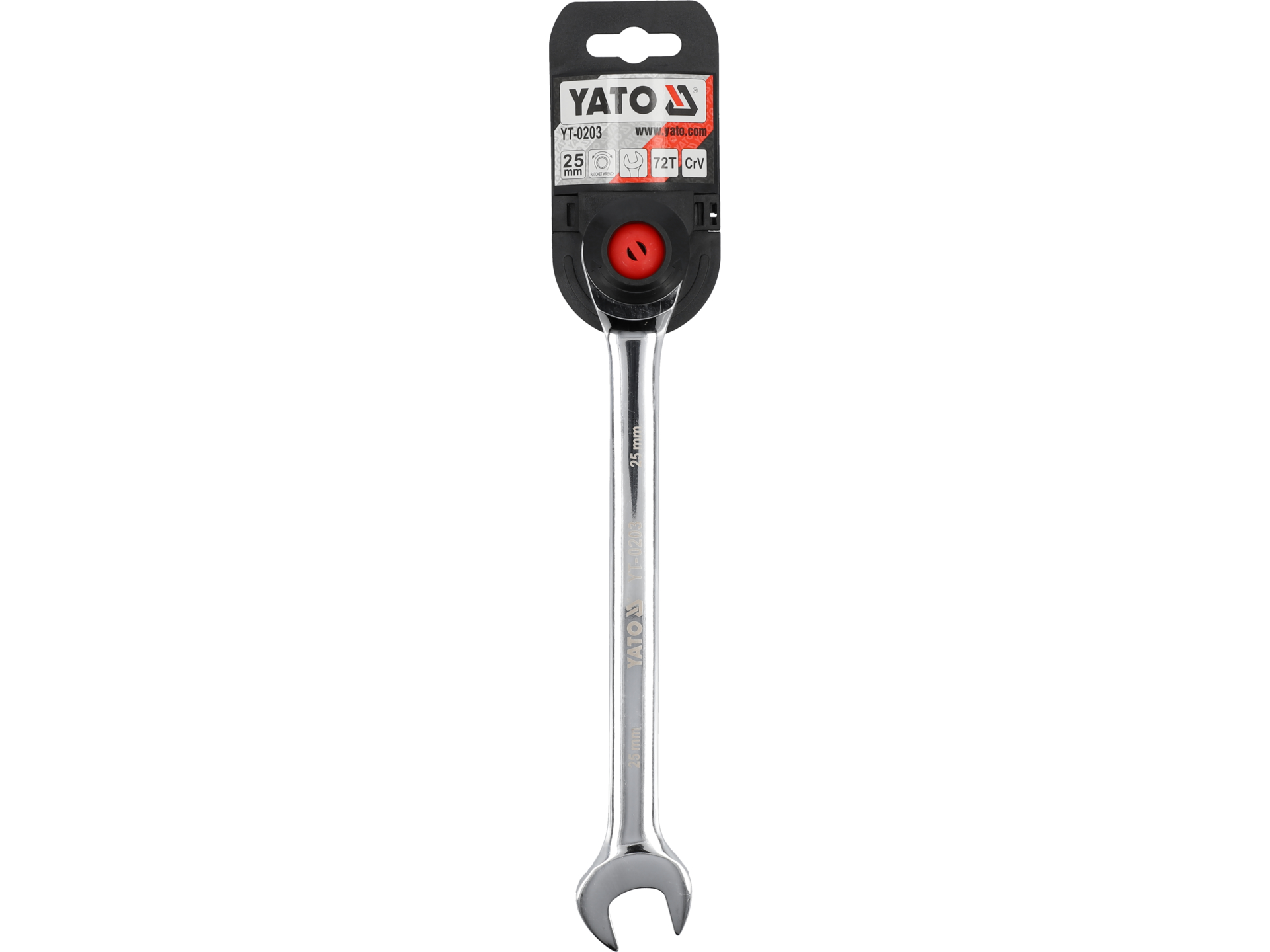 Klucz płasko-oczkowy z grzechotką 25 mm łączy funkcjonalność tradycyjnego klucza płaskiego z zaletami mechanizmu grzechotkowego w oczku. Rozwiązanie przeznaczone do pracy z nakrętkami i łbami śrub o wymiarze klucza 25 mm w warunkach warsztatowych i serwisowych.