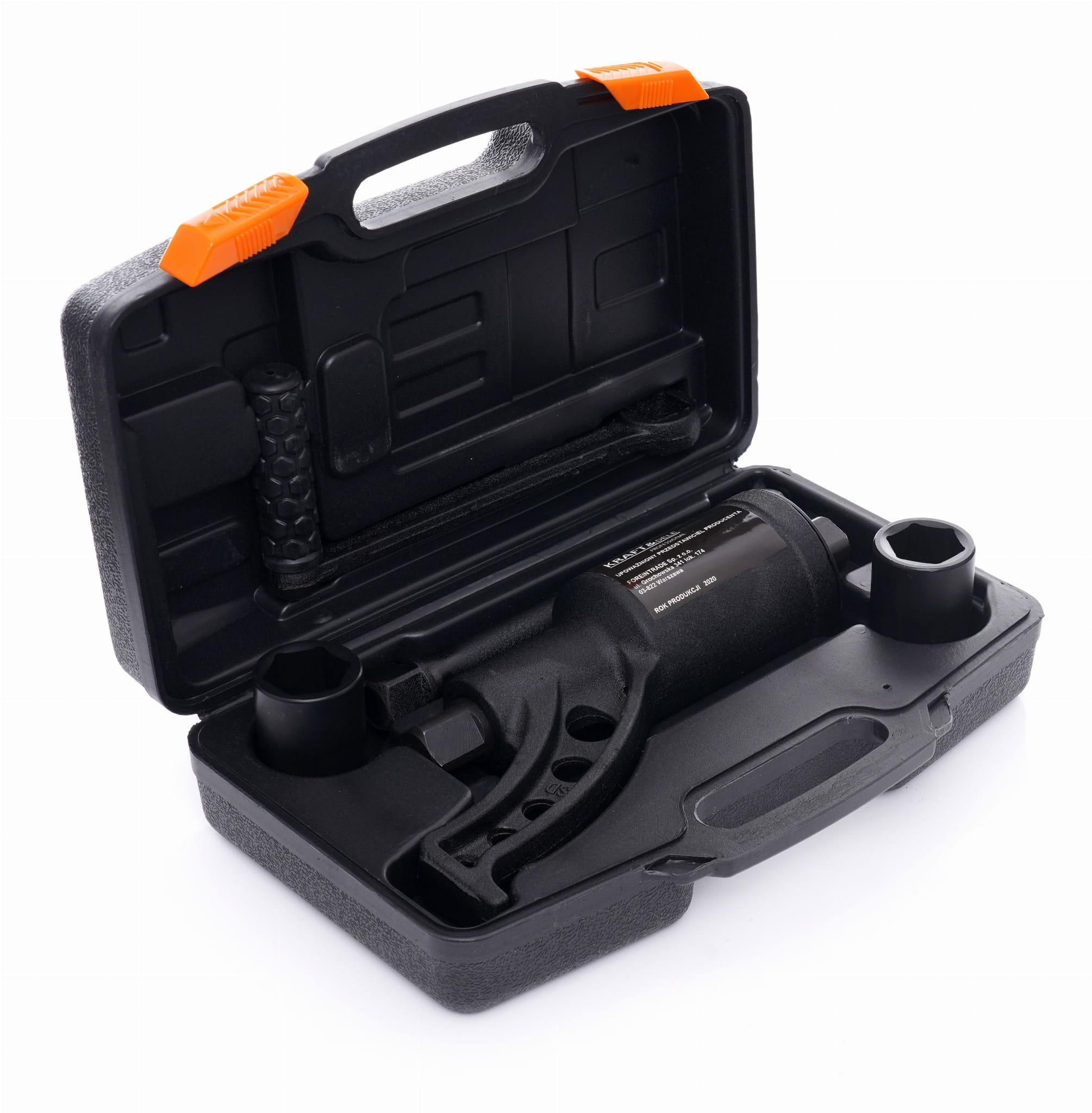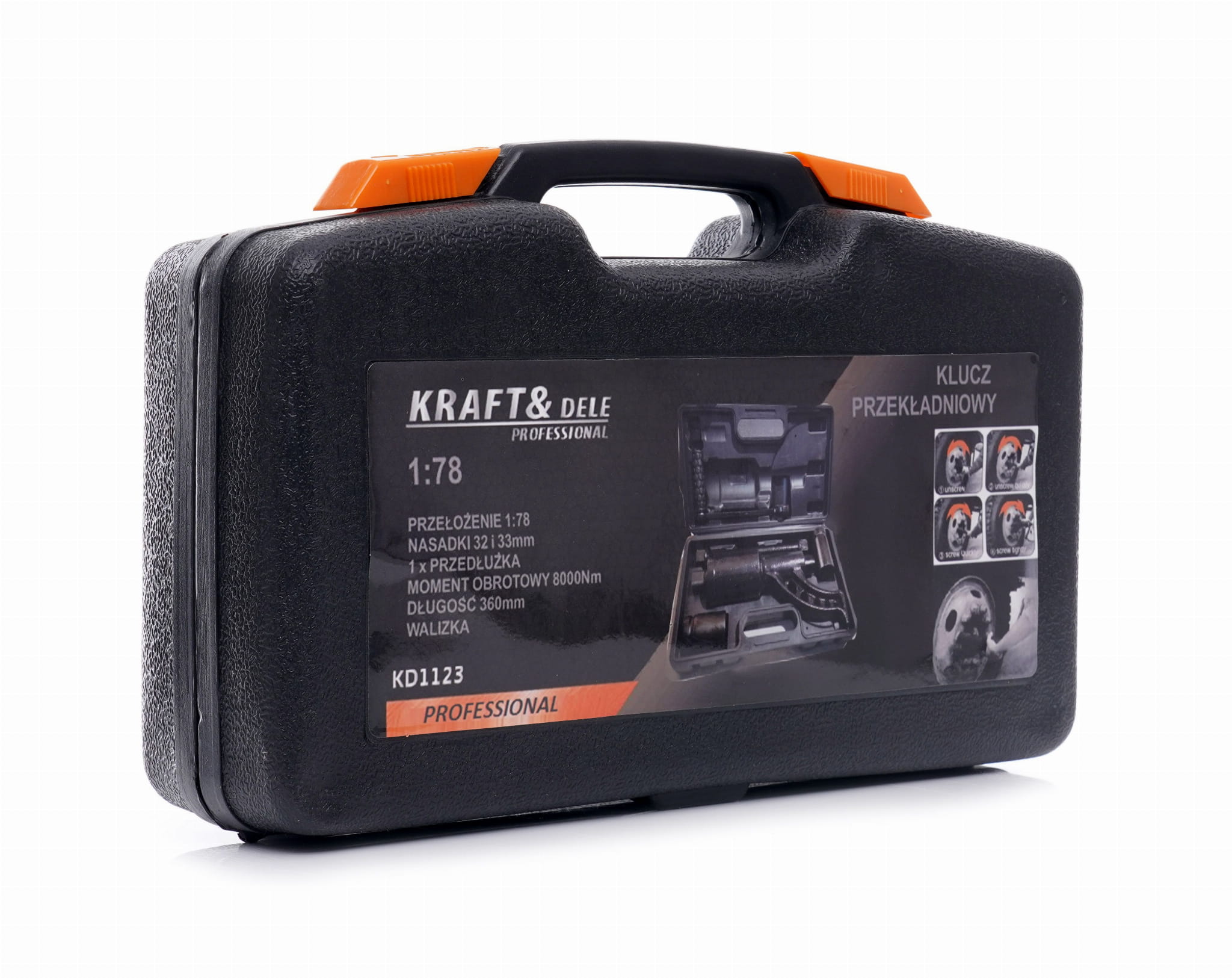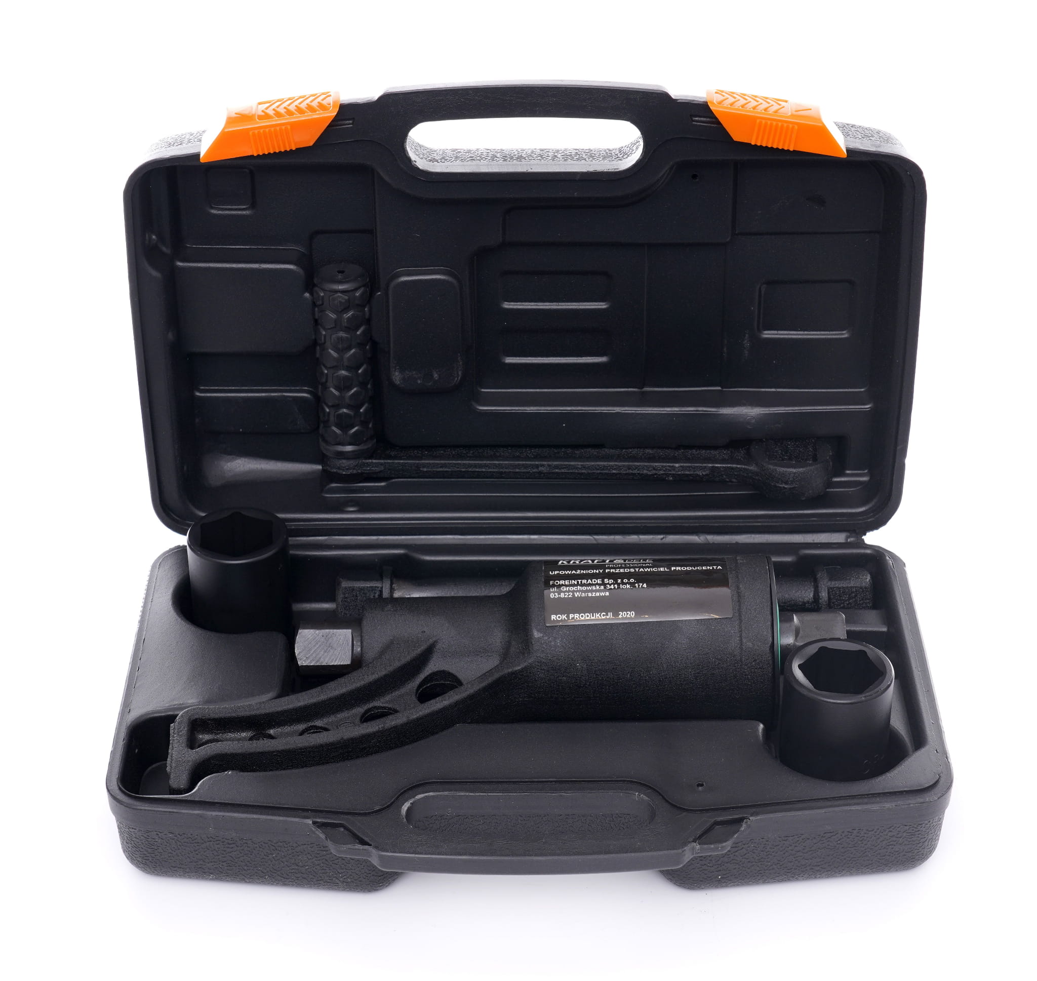 Klucz planetarny (przekładniowy) KD1123 to narzędzie przeznaczone do odkręcania i dokręcania silnie zaciśniętych śrub kół w pojazdach ciężarowych, maszynach rolniczych i budowlanych. Mechanizm planetarny z przełożeniem 1:78 pozwala uzyskać moment obrotowy 8000 Nm bez użycia sprzętu pneumatycznego ani hydraulicznego.