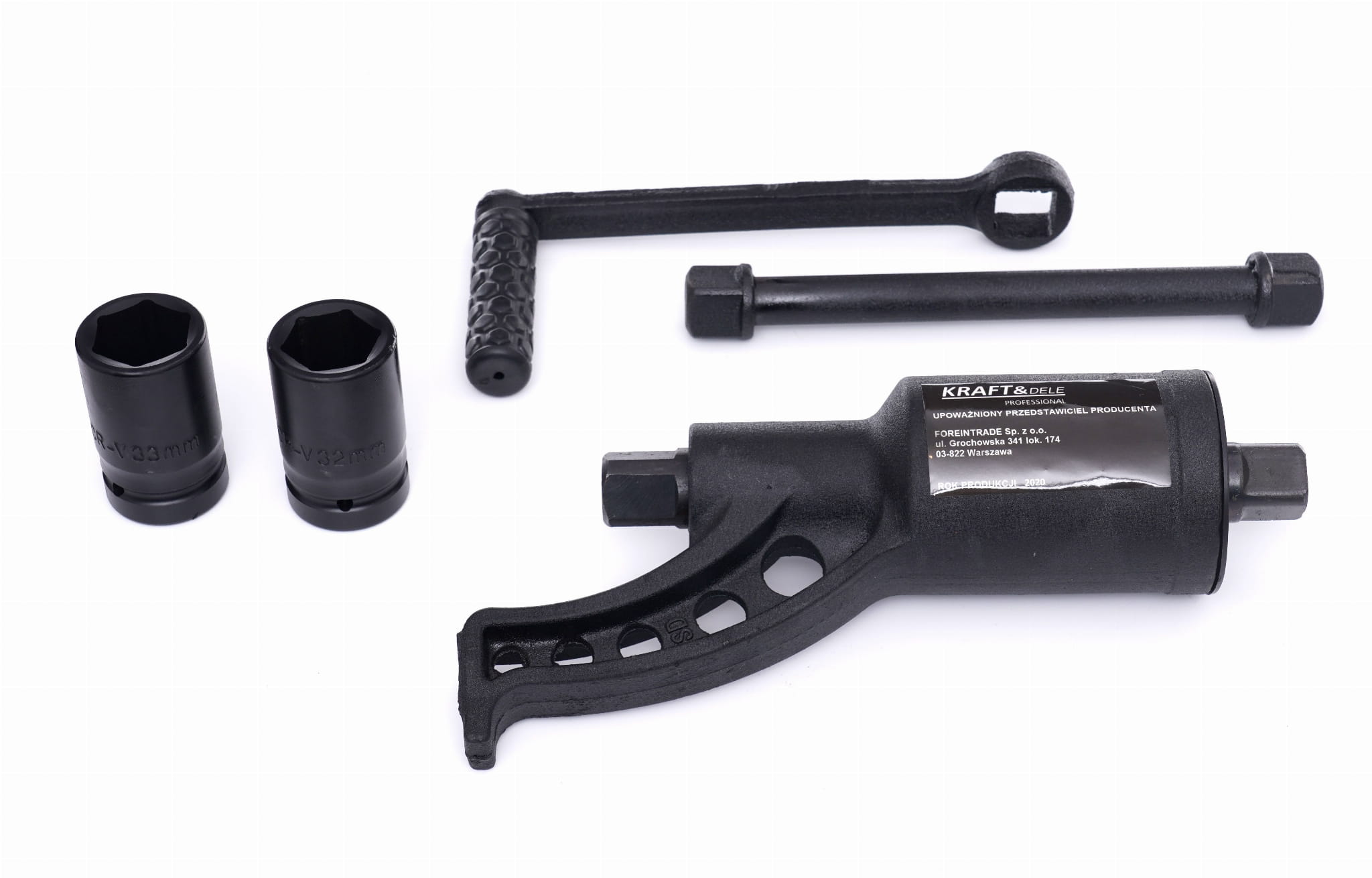 Gniazdo napędowe o rozmiarze 1 cala (25,4 mm) jest standardem stosowanym w profesjonalnych narzędziach do pojazdów ciężkich. Klucz współpracuje ze wszystkimi nasadkami 1" dostępnymi na rynku, co rozszerza zakres stosowania poza dołączone nasadki 32 i 33 mm.