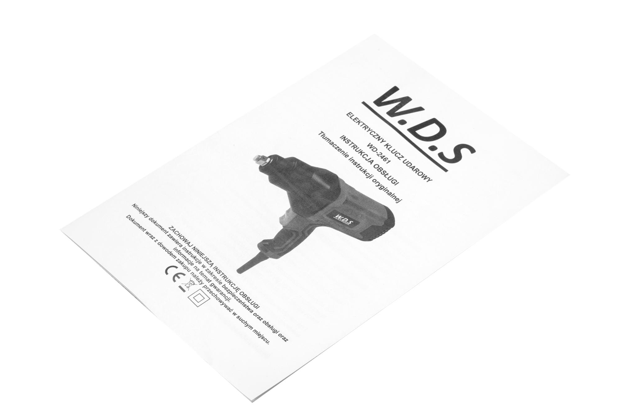 Do klucza WDS2461 należy stosować wyłącznie nasadki udarowe oznaczone symbolem 1/2" z czarnym wykończeniem (tzw. nasadki udarowe). Standardowe nasadki chromowane przeznaczone do kluczy ręcznych nie są przystosowane do pracy z udarami mechanicznymi i mogą ulec pęknięciu podczas użytkowania. Nasadki udarowe wykonane są ze stali o wyższej udarności i charakteryzują się grubszymi ściankami.