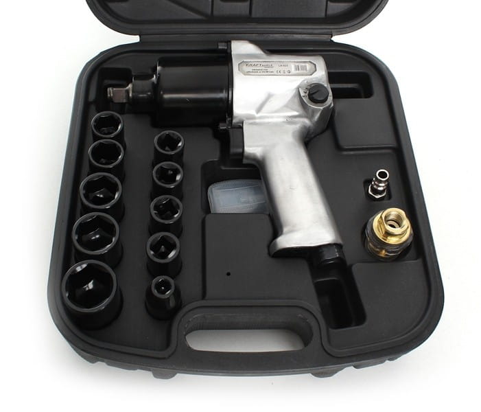 KD1424 to pneumatyczny klucz udarowy z napędem 1/2" i sprzęgłem typu Twin Hammer, przeznaczony zarówno do warsztatów profesjonalnych, jak i do użytku amatorskiego. Narzędzie umożliwia szybki montaż i demontaż połączeń śrubowych przy zachowaniu wysokiego momentu obrotowego bez konieczności stosowania dużej siły fizycznej. W zestawie znajduje się 10 nasadek ze stali chromowo-wanadowej, przedłużka, olejarka, złączka oraz walizka transportowa.