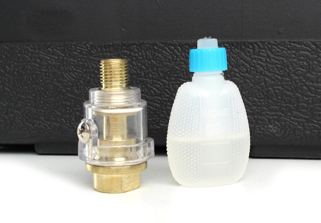 Narzędzia pneumatyczne wymagają regularnego smarowania mechanizmu wewnętrznego. W zestawie dołączona jest olejarka — zaleca się podawanie kilku kropel oleju do narzędzia przed każdą sesją pracy lub zgodnie z zaleceniami instrukcji obsługi. Brak smarowania przyspiesza zużycie łopatek silnika pneumatycznego i skraca żywotność narzędzia.