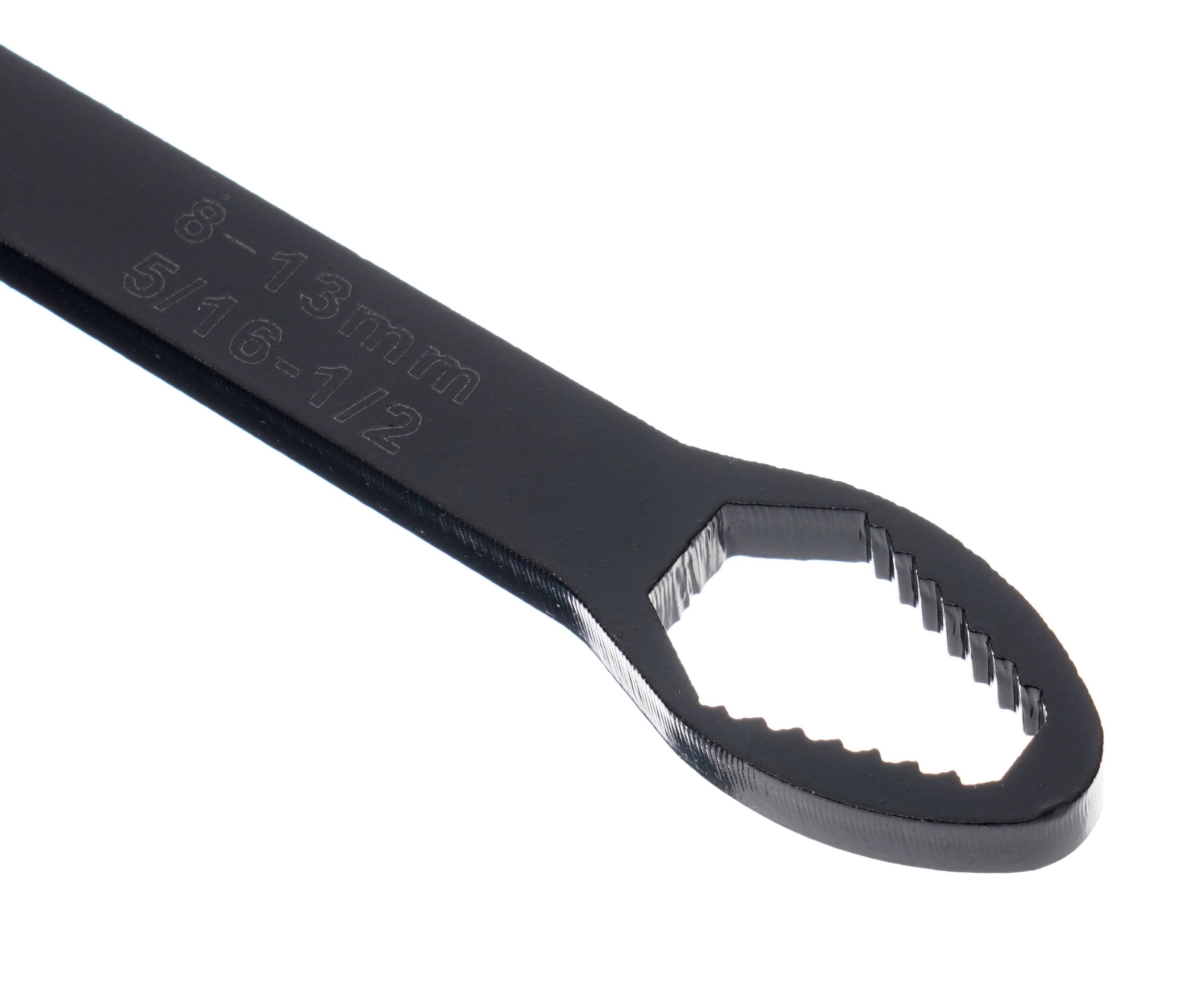 Uniwersalny klucz oczkowy zastępuje ponad 30 kluczy i nasadek, co ułatwia organizację i transport.