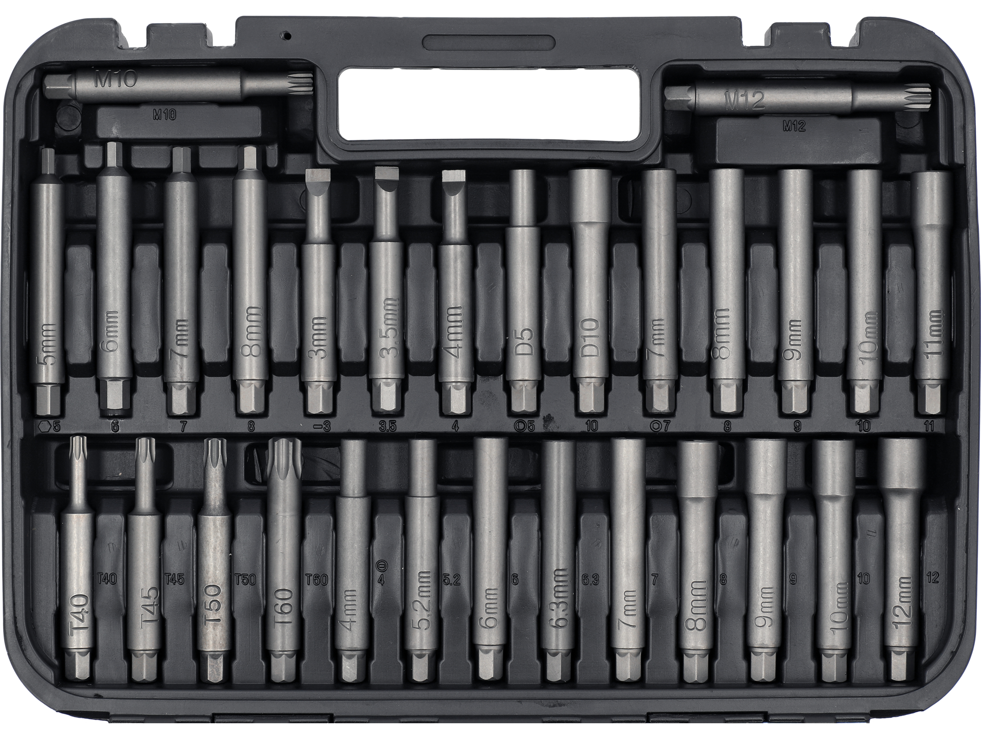 Sztywna obudowa zabezpiecza narzędzia przed uszkodzeniem mechanicznym podczas transportu i przechowywania. System zatrzasków zapewnia szczelne zamknięcie, a wyprofilowane gniazda utrzymują każdy element na wyznaczonym miejscu, ułatwiając identyfikację brakujących części po zakończeniu pracy.